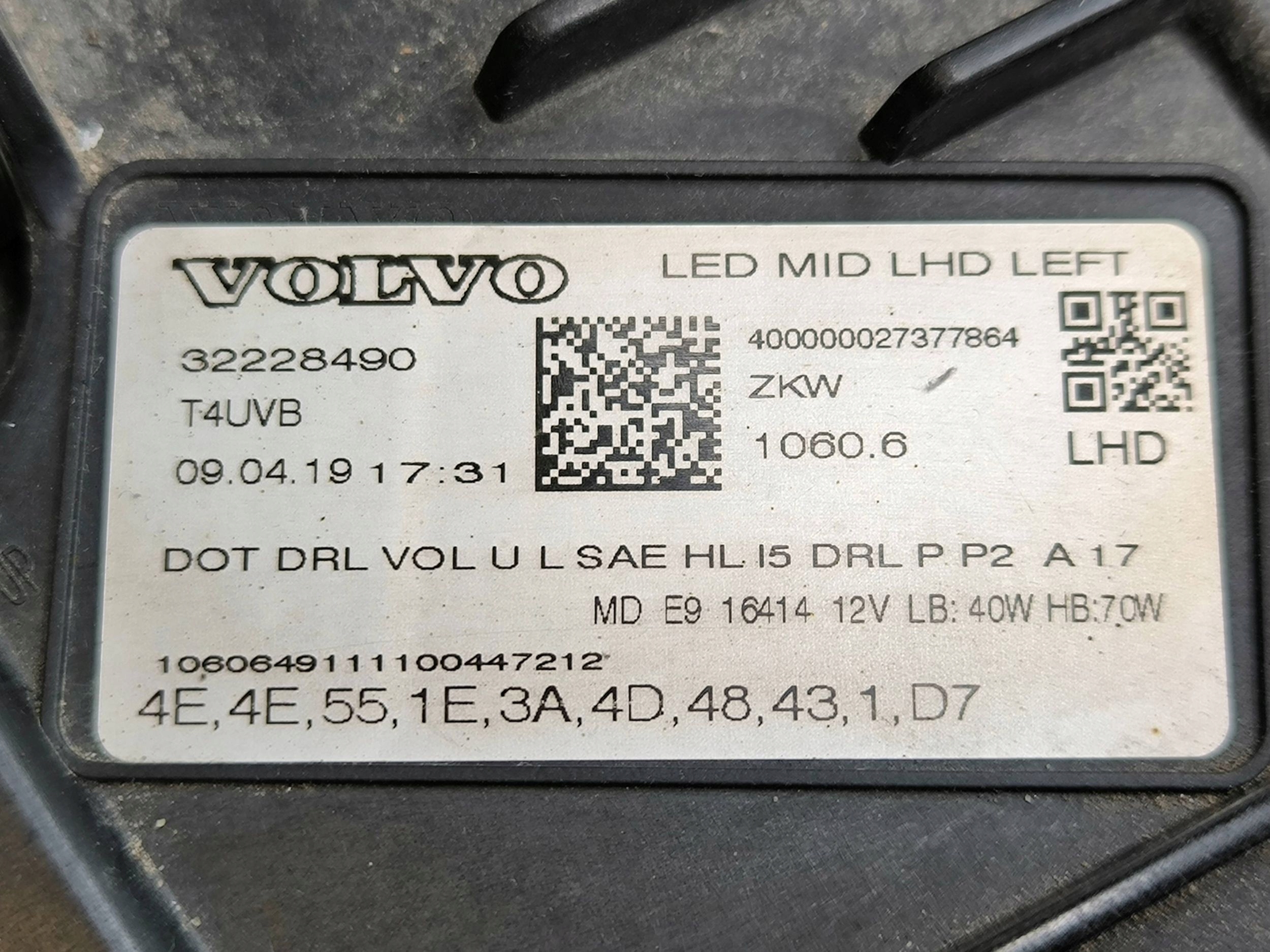 Volvo xc60 2019 ліва сторона лампа передня