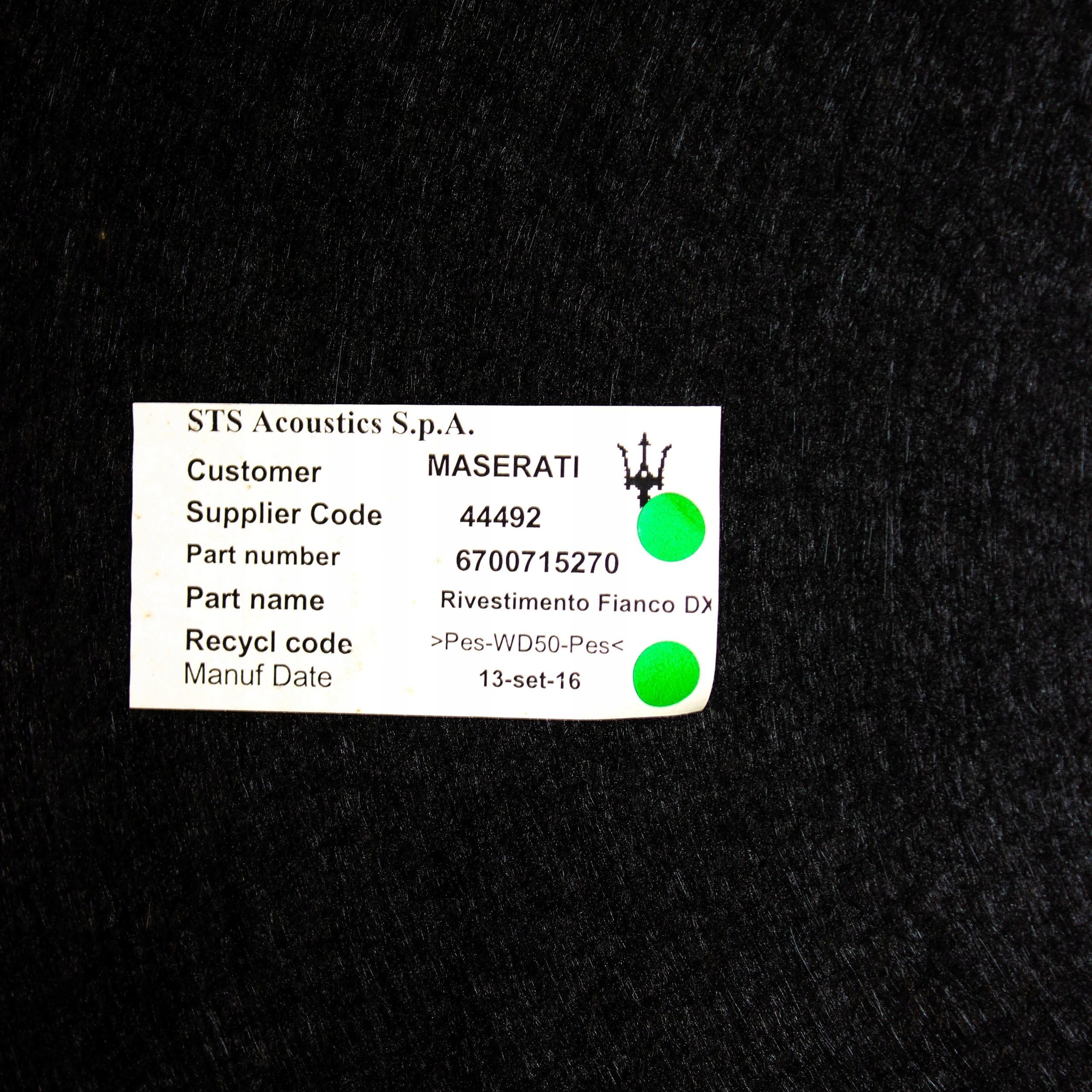 Maserati ghibli 2017 права сторона обшивка / оббивка / багажника 6700715270