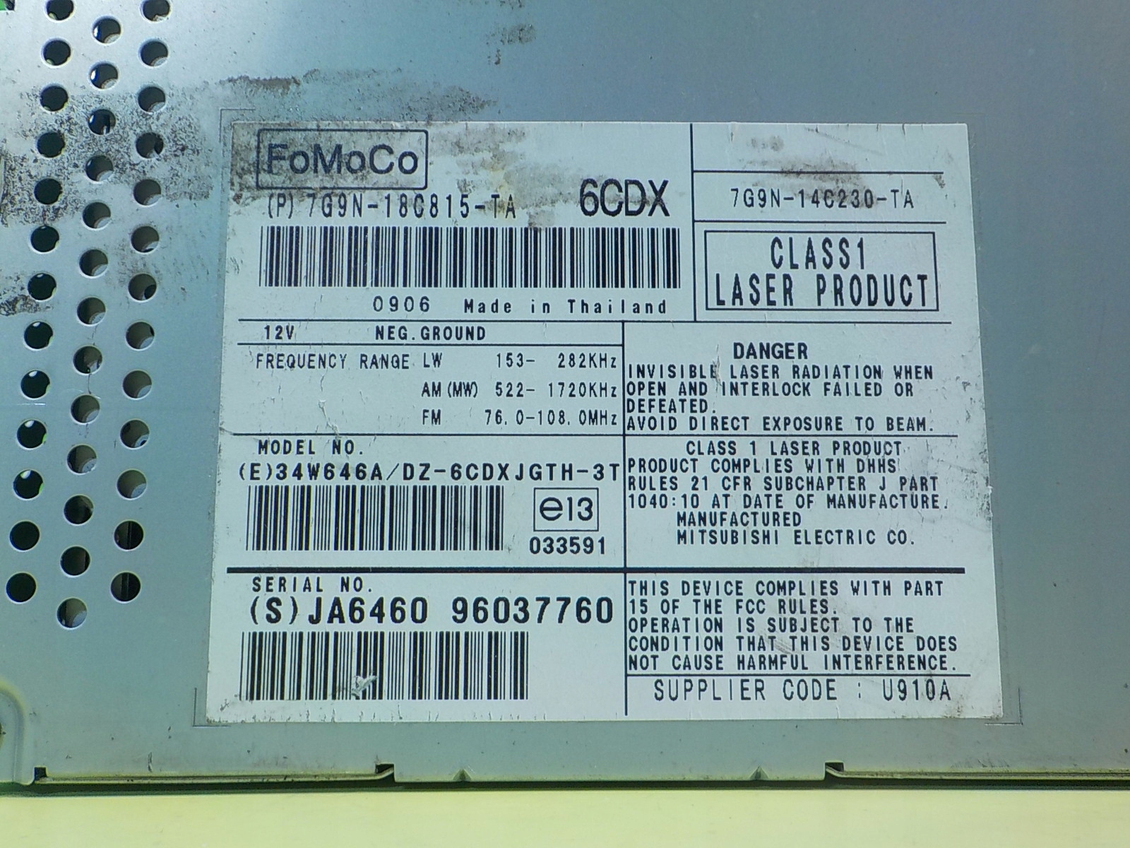 | Каталожний номер деталі: | radio 96037760 7G9N-14C230-TA 7G9N 14C230 TA 7G9N14C230TA 16AB66 25 |