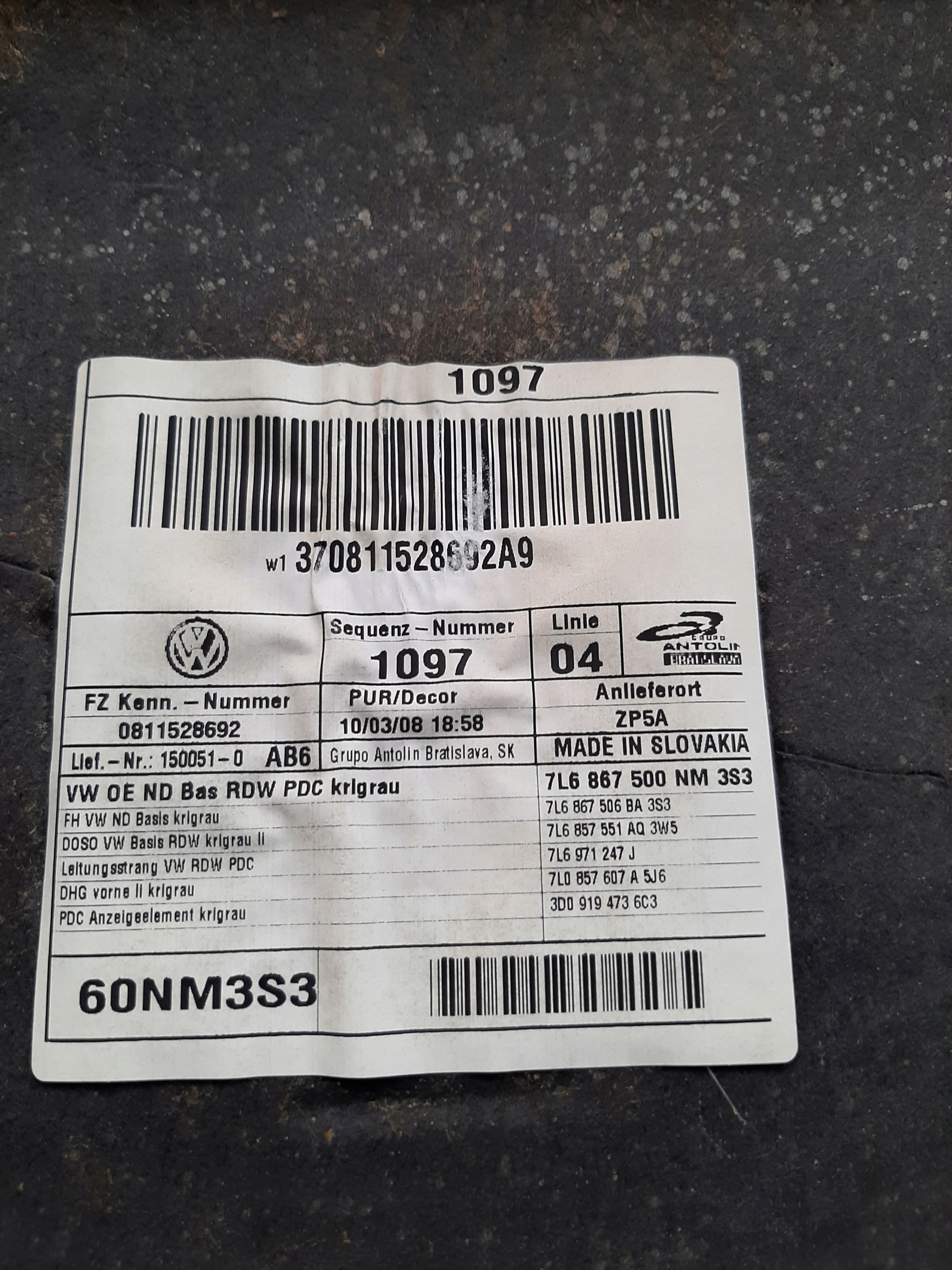 Оригінальний каталожний номер: 7L6867506BJ