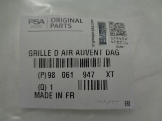 | Каталожний номер деталі: | 98061947XT, 98, 06, 19, 47, XT |
