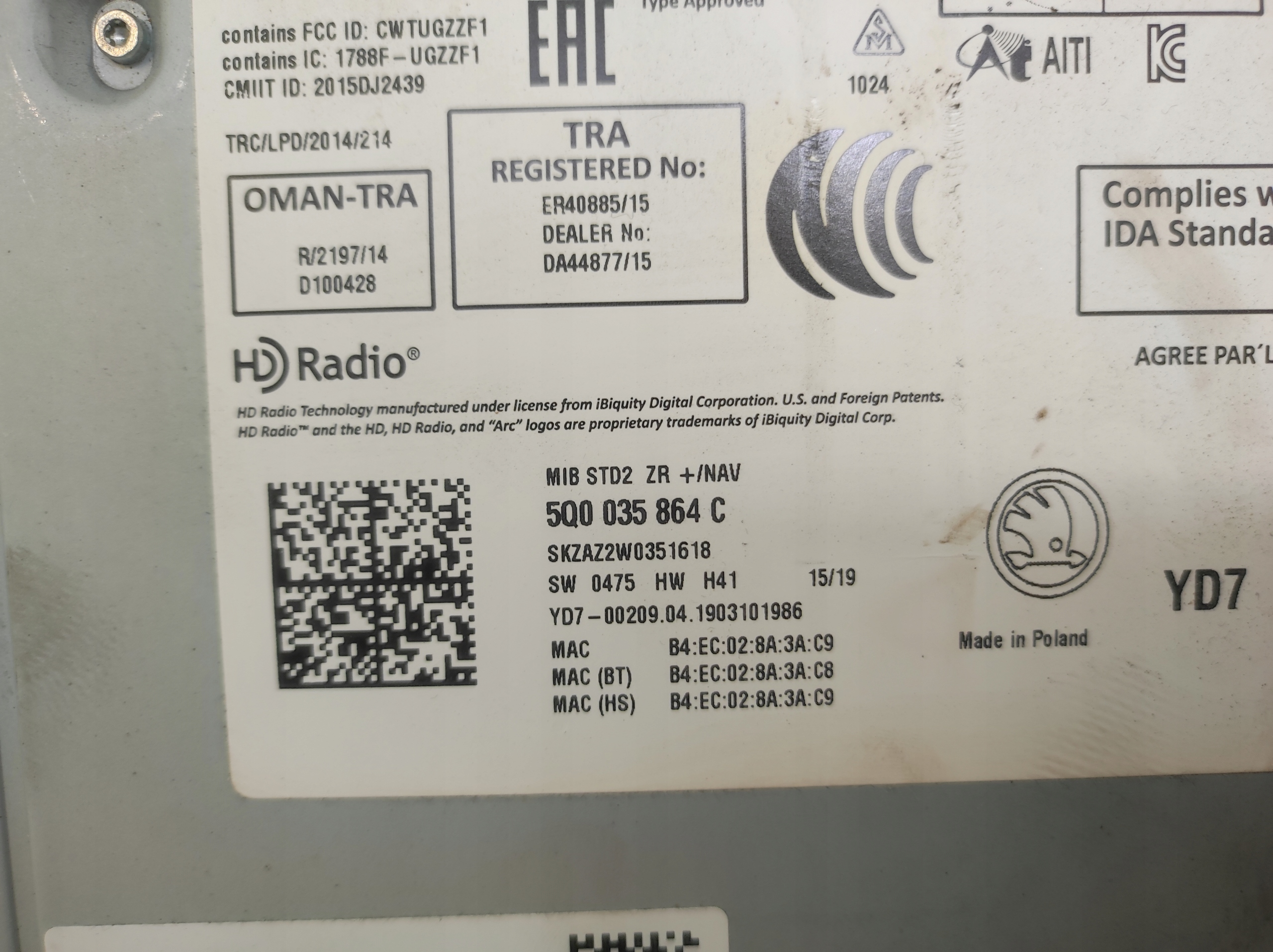Радіо навігація зчитувач мультимедіа карти sd skoda octavia iii 3