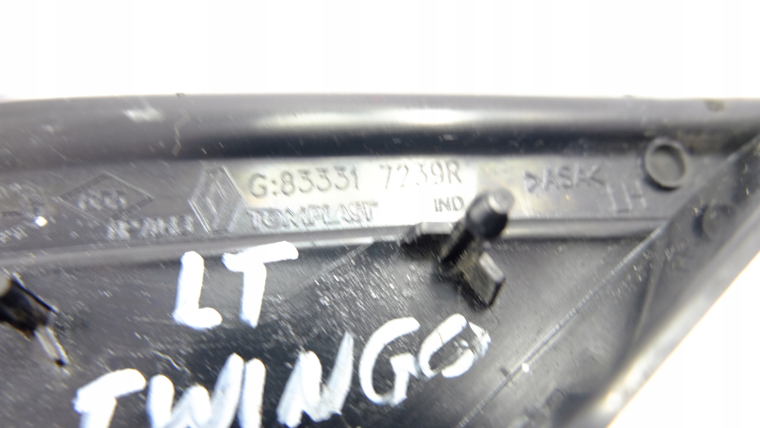 Каталожний номер деталі: RENAULT, TWINGO, III, ZAŚLEPKA, TRÓJKĄT, BŁOTNIKA, LEWY, TYŁ, 833317239R