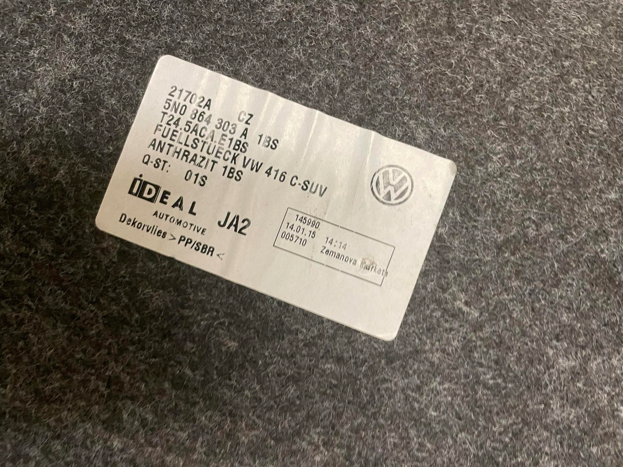 | Каталожний номер деталі: | VW TIGUAN I WYKŁADZINA DYWAN BAGAŻNIKA 5N0864303A lukcars7RF |