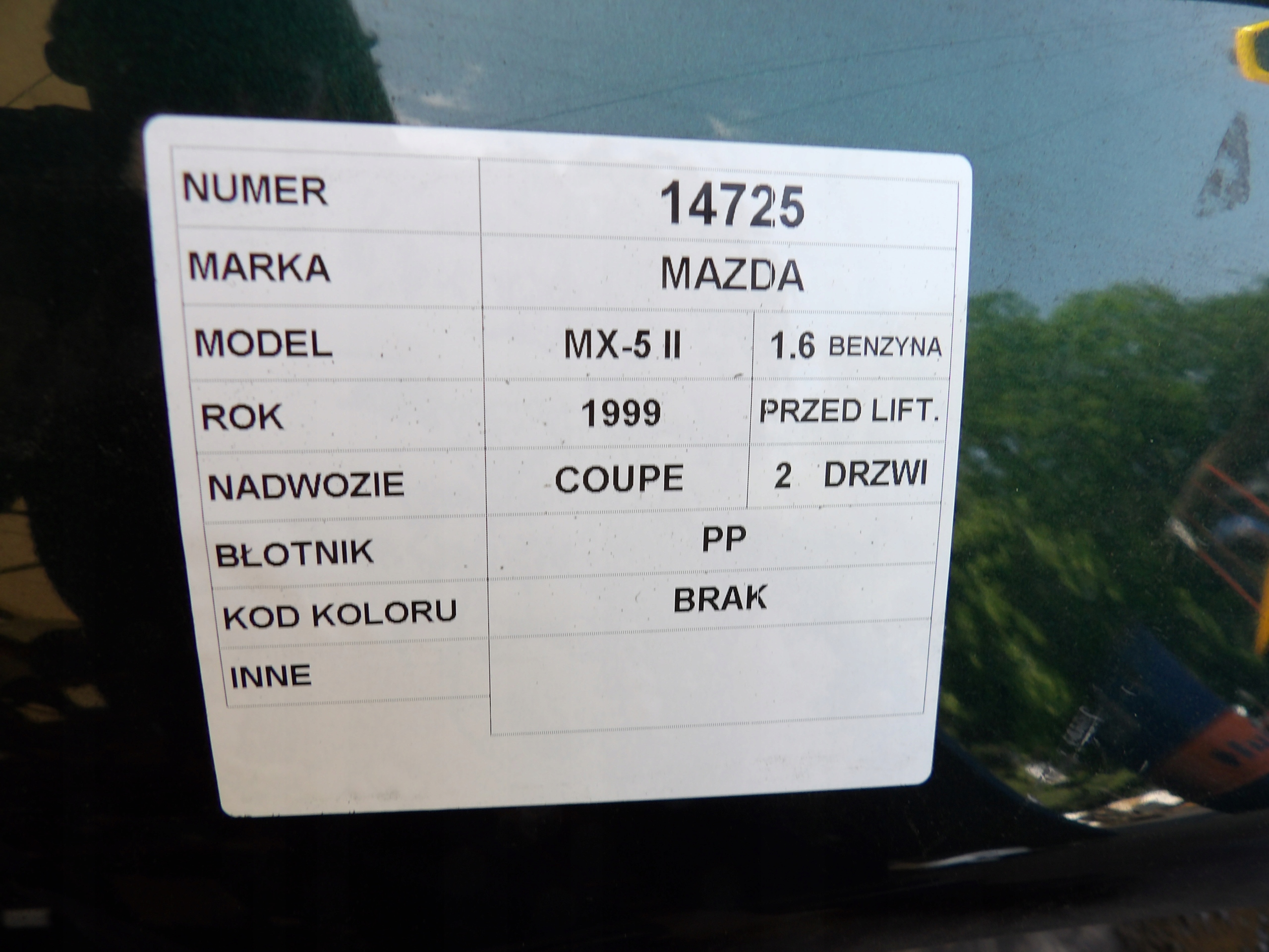 | Каталожний номер деталі: | Mazda MX-5 II błotnik PP |