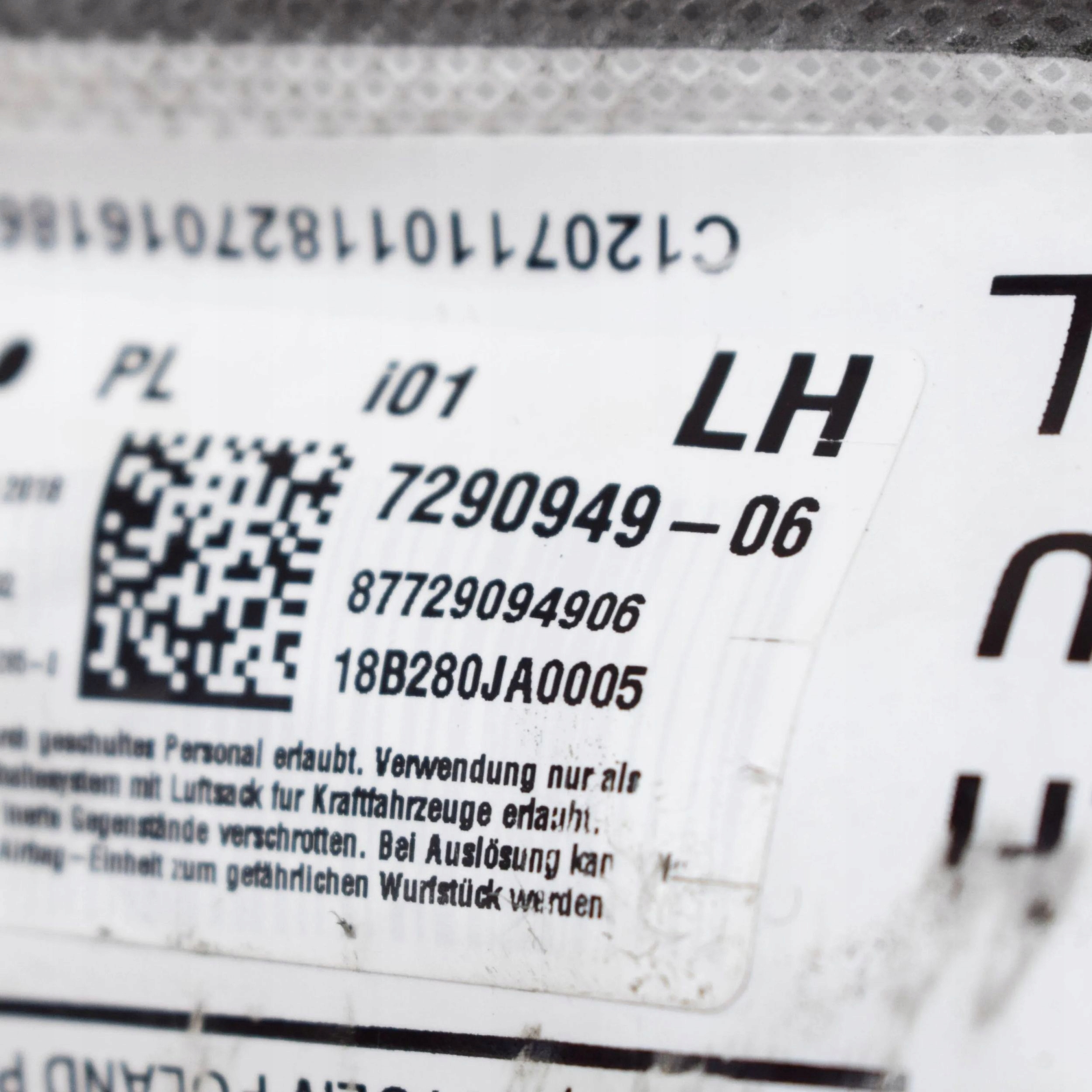 Bmw i3 2018 перед сторона ліва подушка повітряна подушка безпеки сидіння
