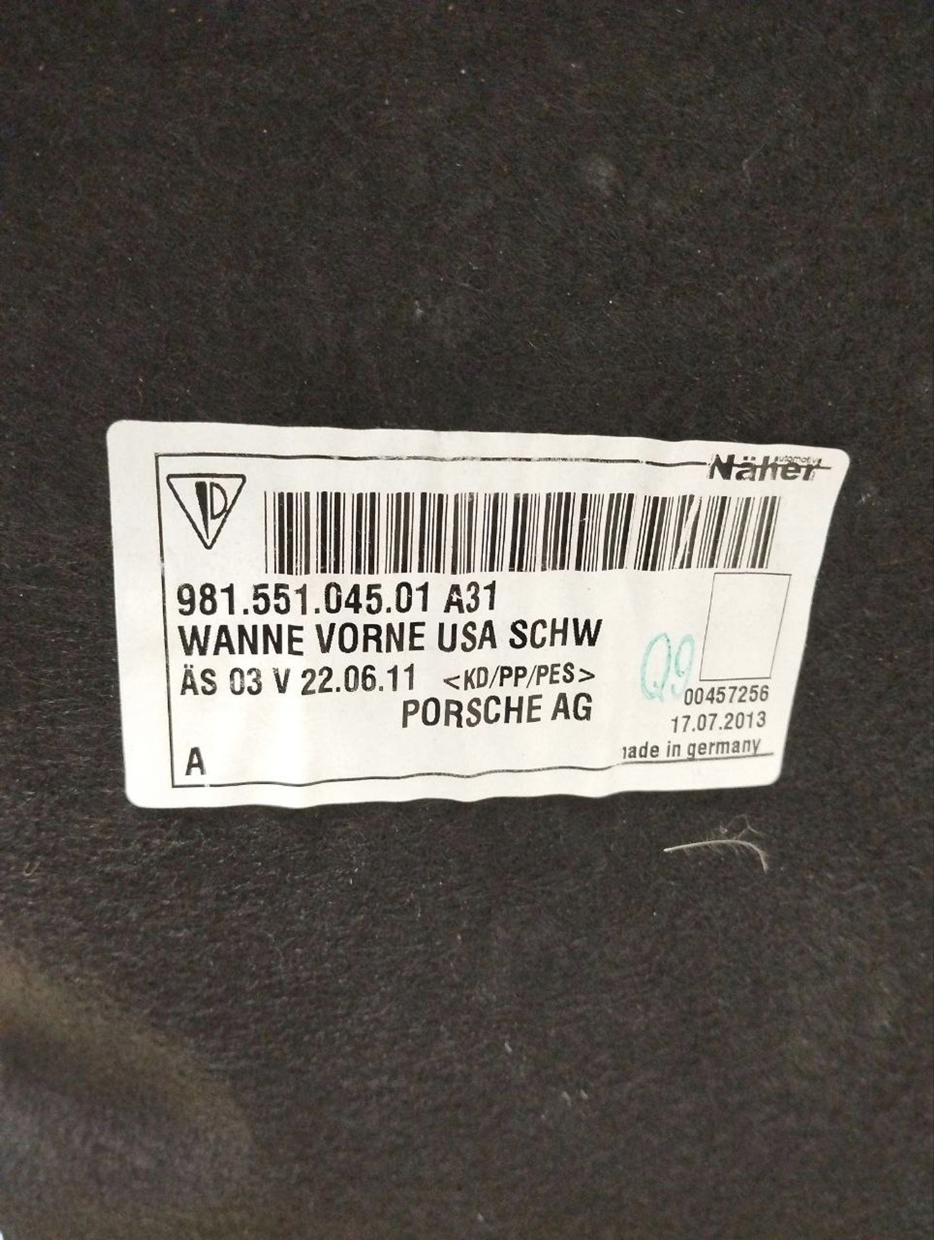 Porsche cayman 981 2014 обшивка підлогова багажника 98155104501