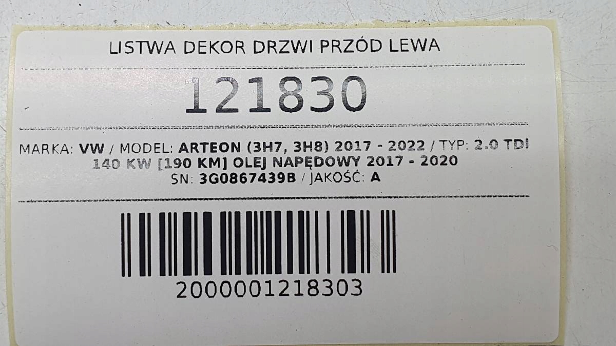 Молдинг dekor обшивка двері перед ліва drewno хром vw arteon 3g0867439b