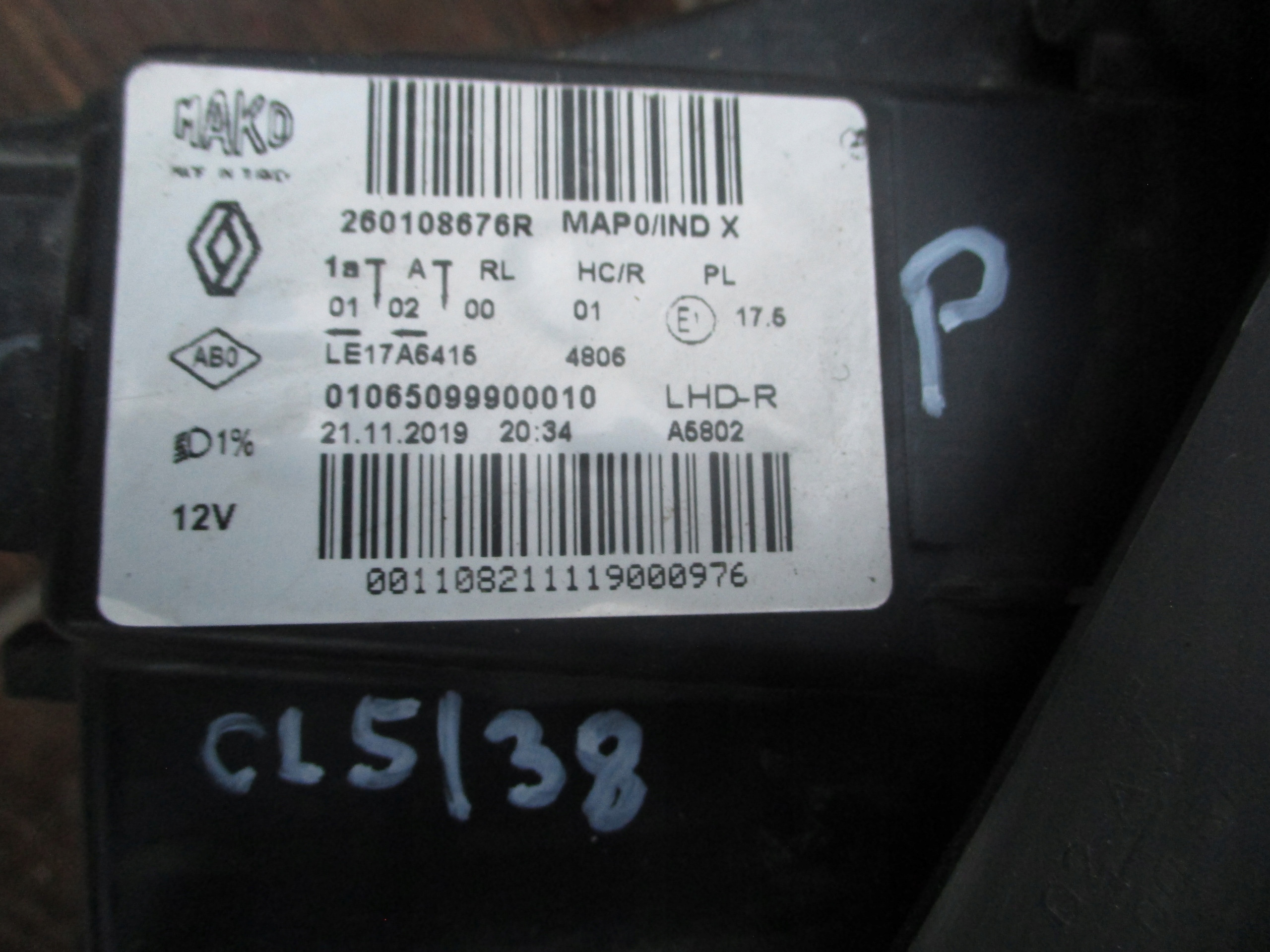 Renault clio v лампа фара правий europa 19-23 rok 260108676r