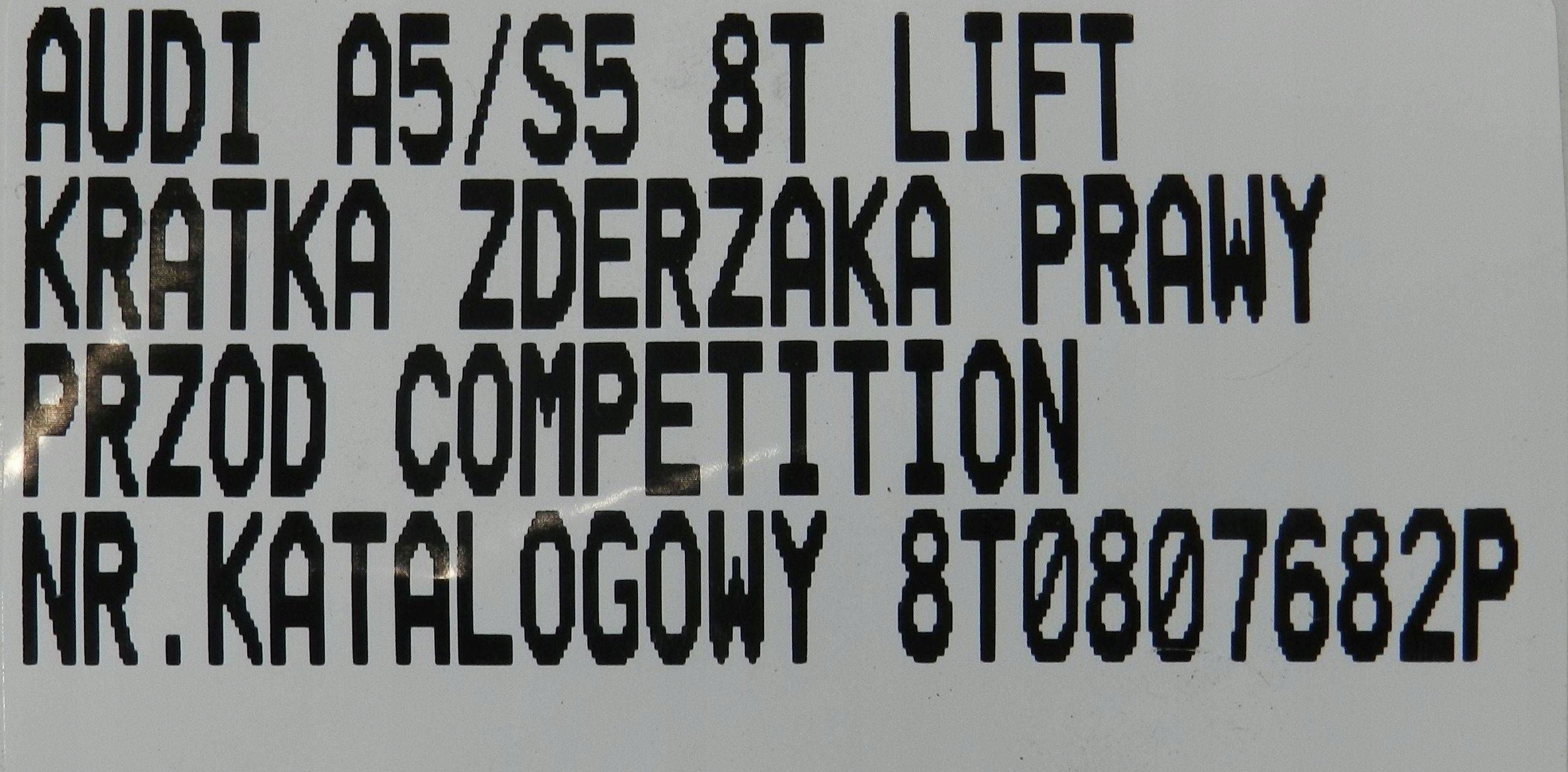 | Каталожний номер деталі: | A5 8T LIFT S5 COMPETITION KRATKA ATRAPA HALOGENU ZDERZAKA PRAWA PRAWY PRZÓD 8T0807682P |
