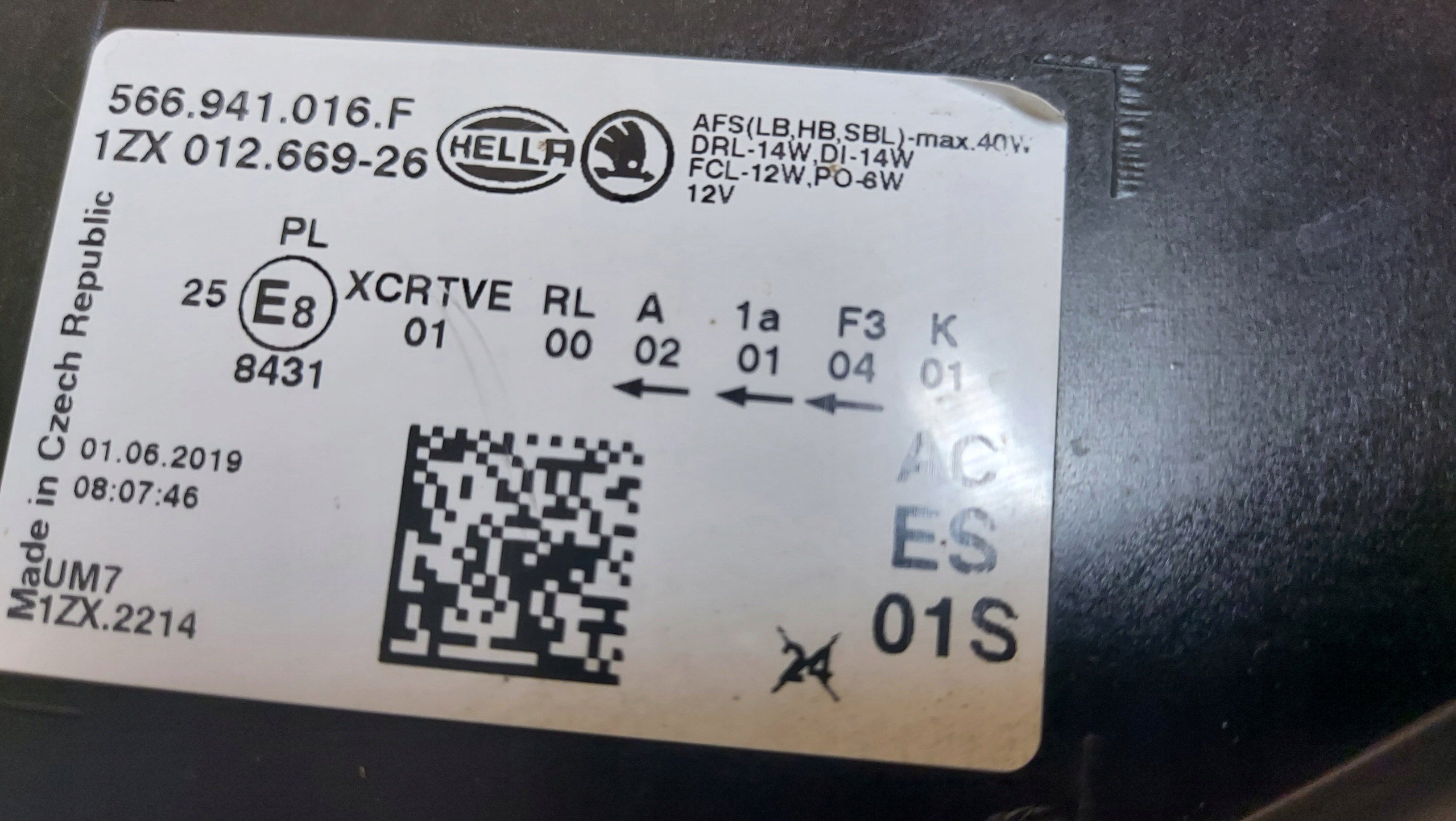 Лампа права правий r перед передня skoda kodiaq led