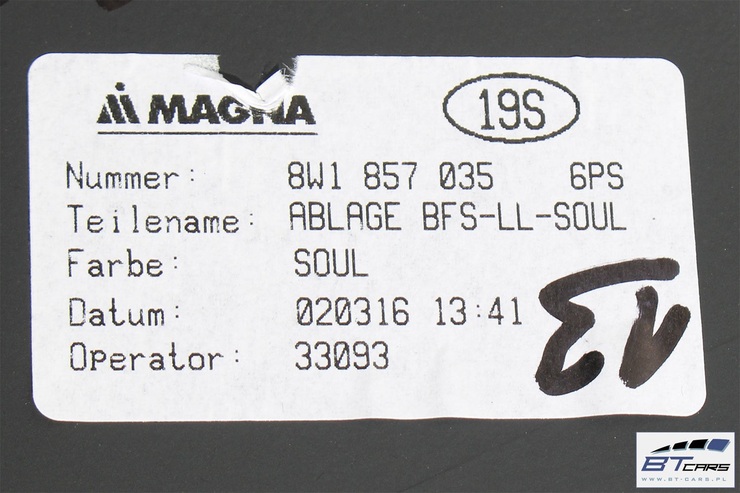 Оригінальний каталожний номер: 8W1 857 035, 8W1 857 035 B