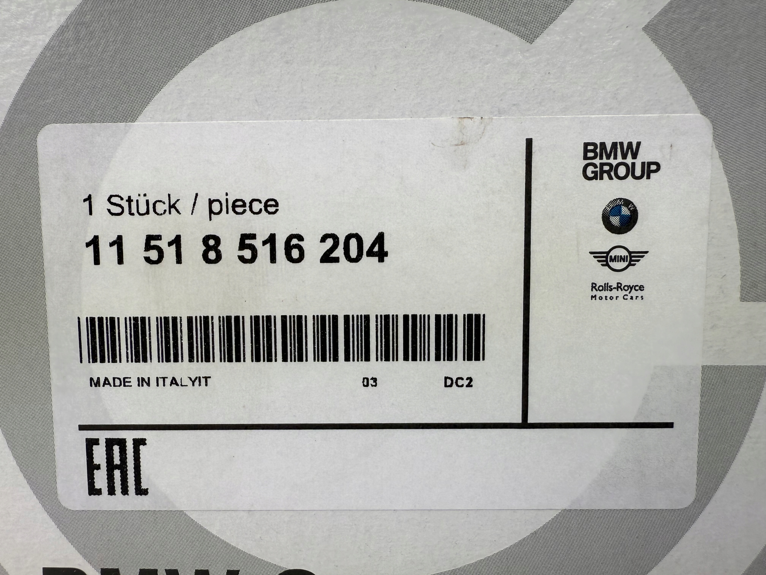 Оригінальний каталожний номер: 11518516204, 8516204