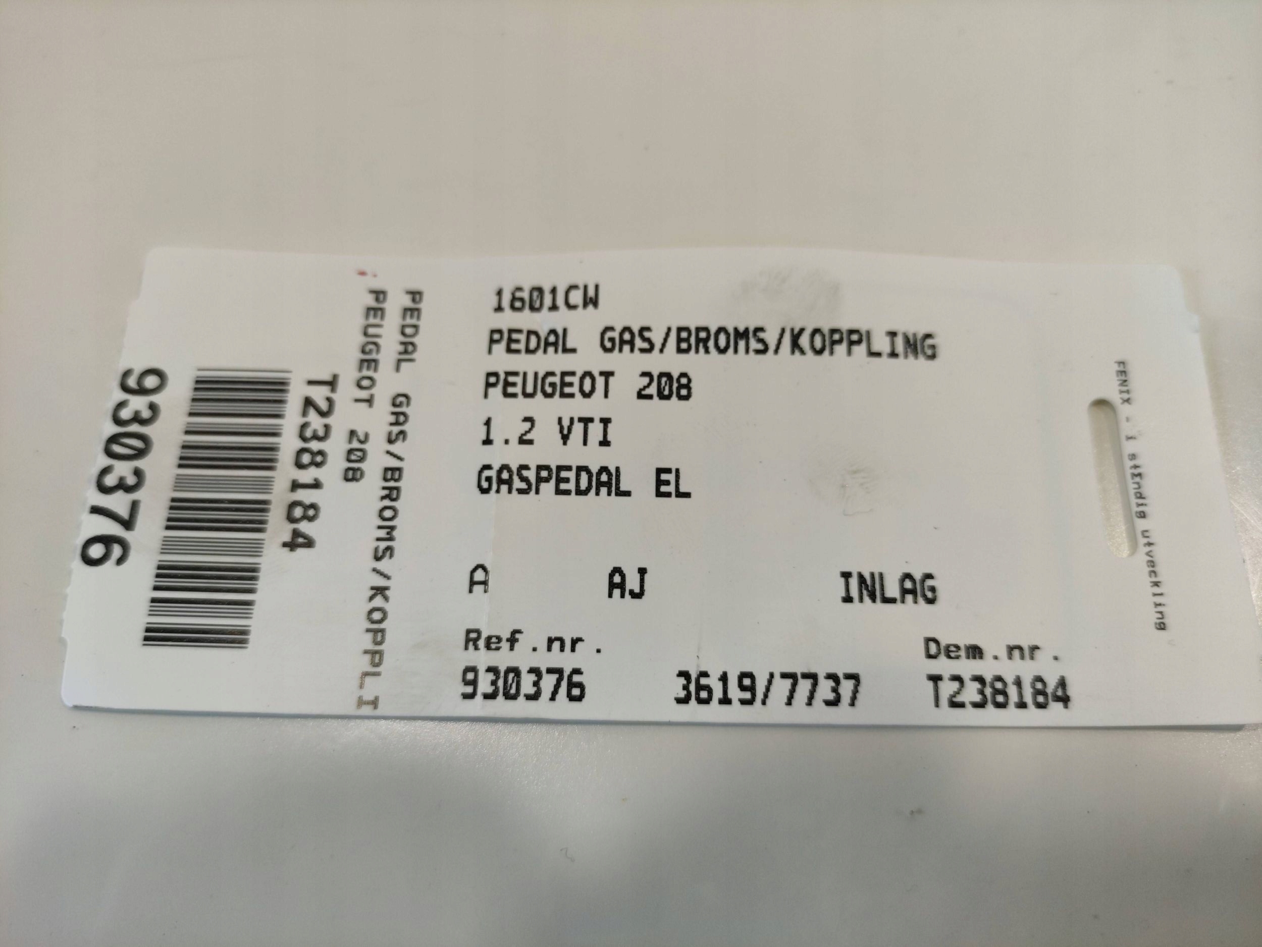 Peugeot 208 педаль газу потенціометр 1601cw