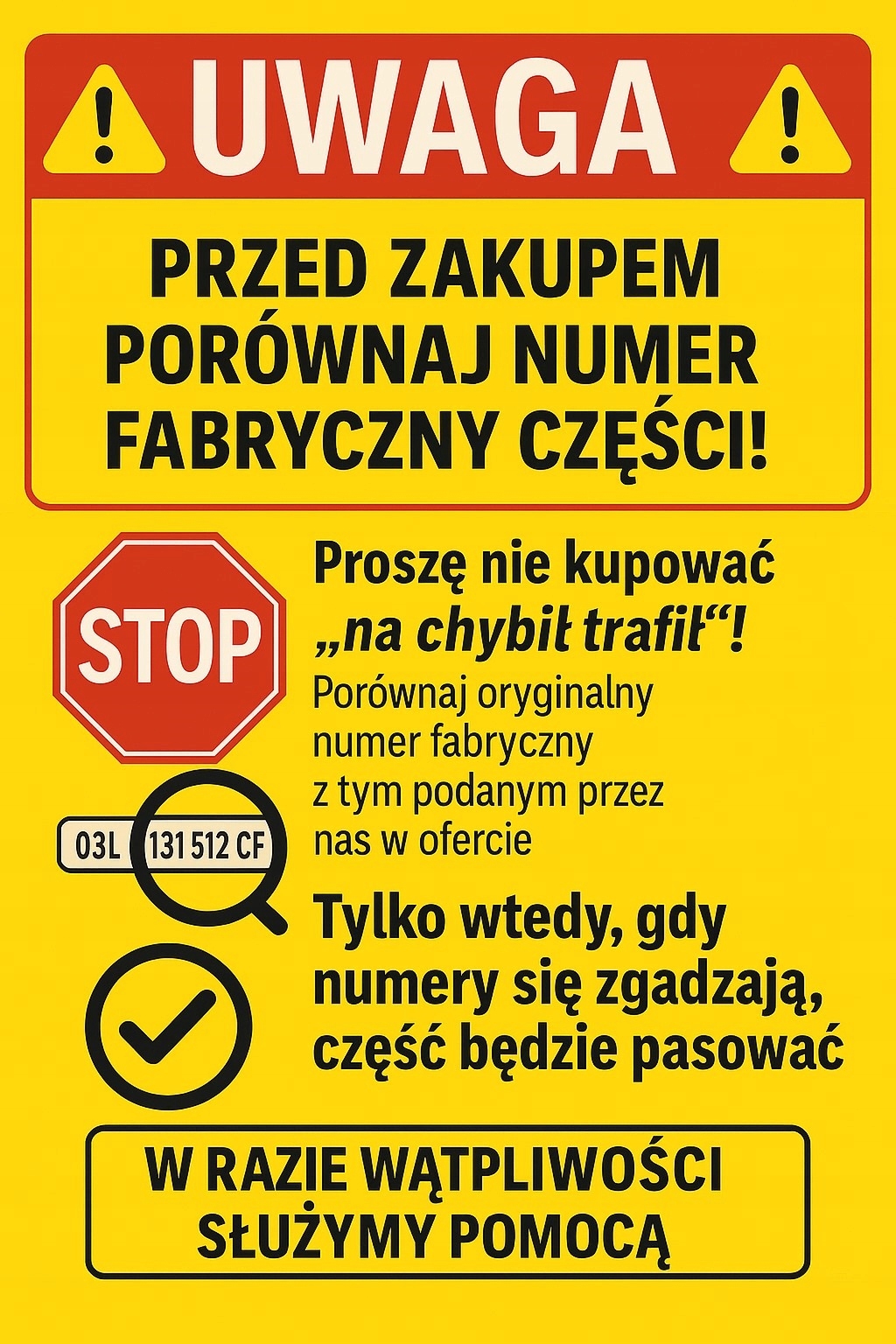 - покупець не перевірив сумісність або партномер запчастини під час оформлення замовлення, і внаслідок цього вона не підійшла;