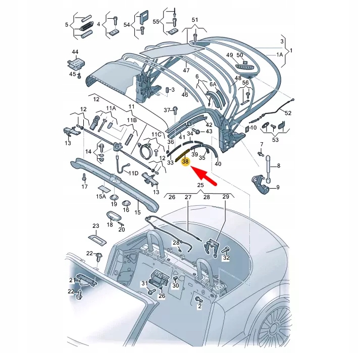 Audi tt 8j soft top frame передня частина правий ущільнювач 8j7871456 oem