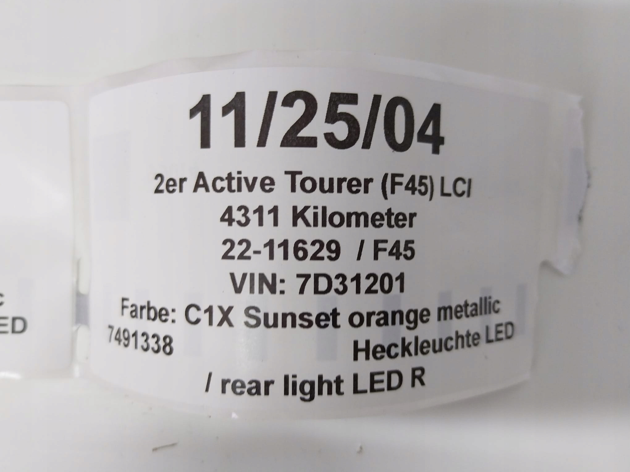 Каталожний номер деталі: LAMPA TYŁ KOMPLET 4 SZT W KLAPE W BŁOTNIK BMW 2 F45 LCI