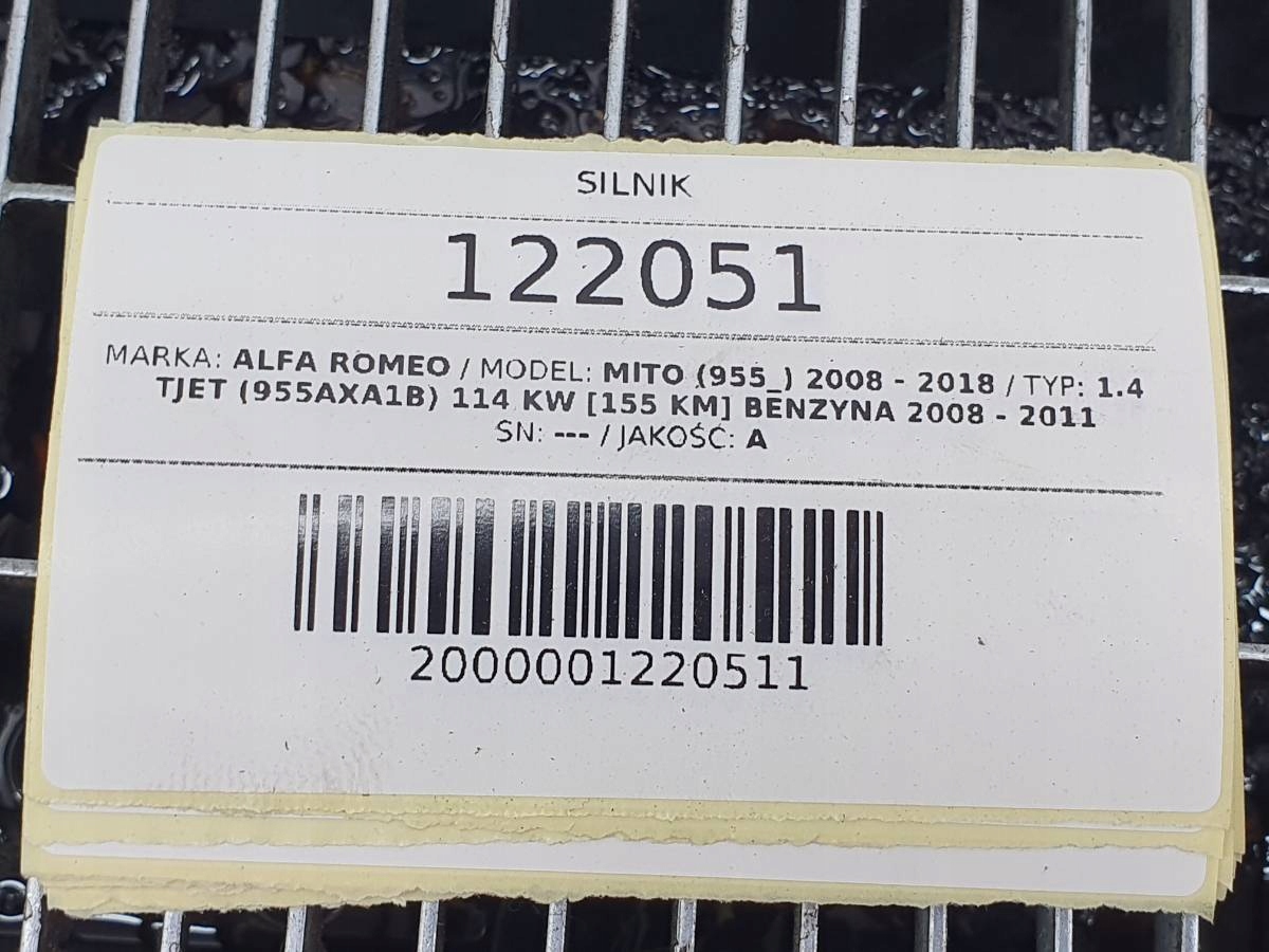 Двигун 199a8000 блок двигуна 1.4 t-jet alfa romeo mito fiat 155