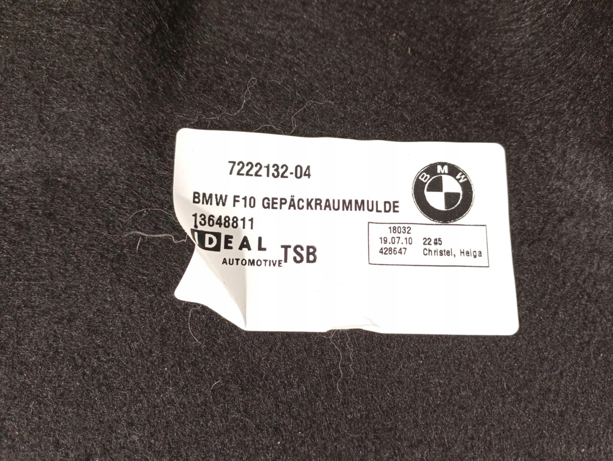 Каталожний номер деталі: SCHOWEK, WNĘKA, BAGAŻNIKA, BMW, 5, F10, 7222132