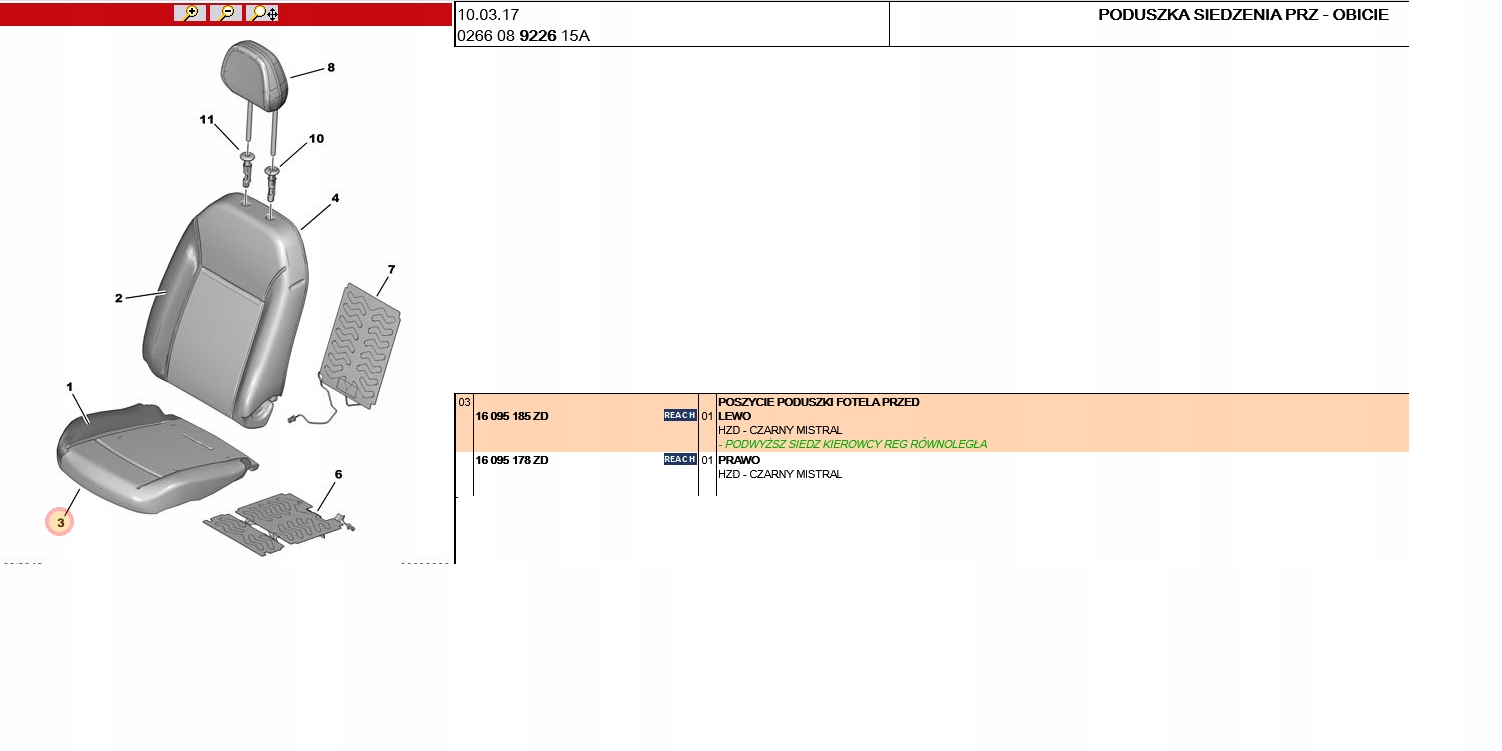 Як перевірити сумісність Обшивка подушки безпеки сидіння przed ліва citroen c-elysee оригінальний номер 16095185zd з моїм авто?