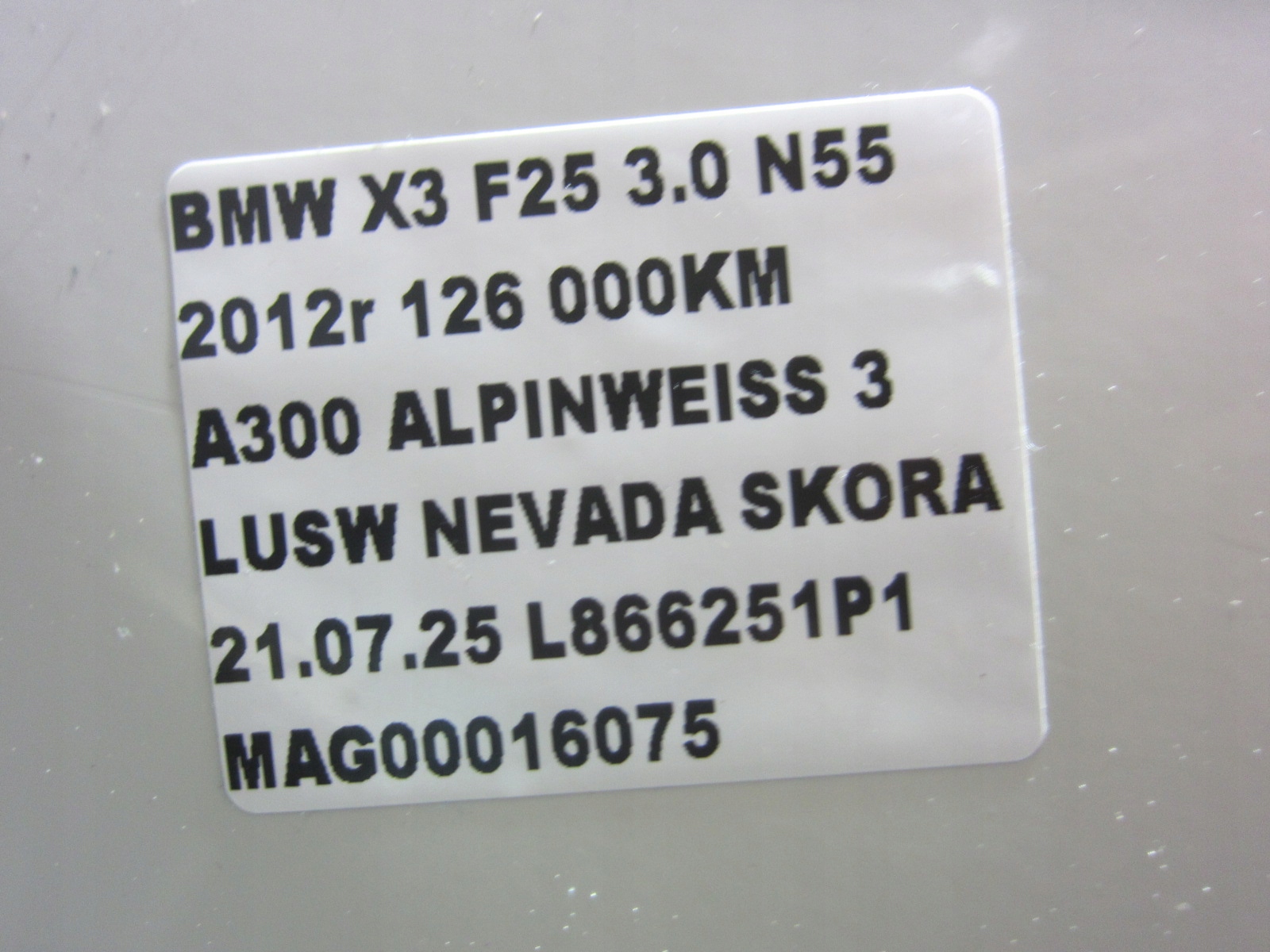 | Каталожний номер деталі: | BMW X3 F25 ZDERZAK PRZEDNI PRZÓD A300 ALPINWEISS 3 PRZED LIFT 7210451 BIAŁY |