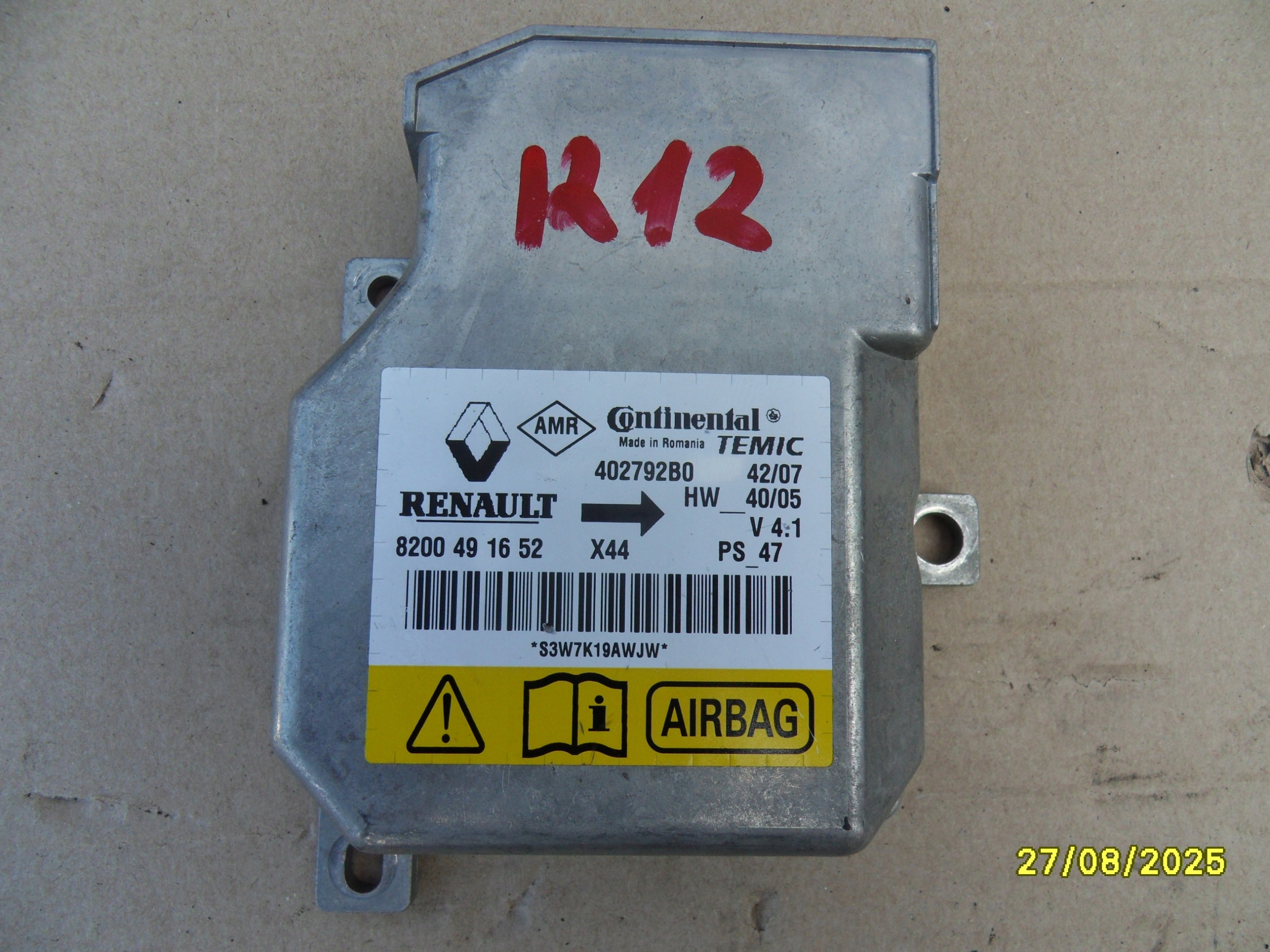 Модуль датчик подушка безпеки renault оригінальний номер 8200491652 402792b0