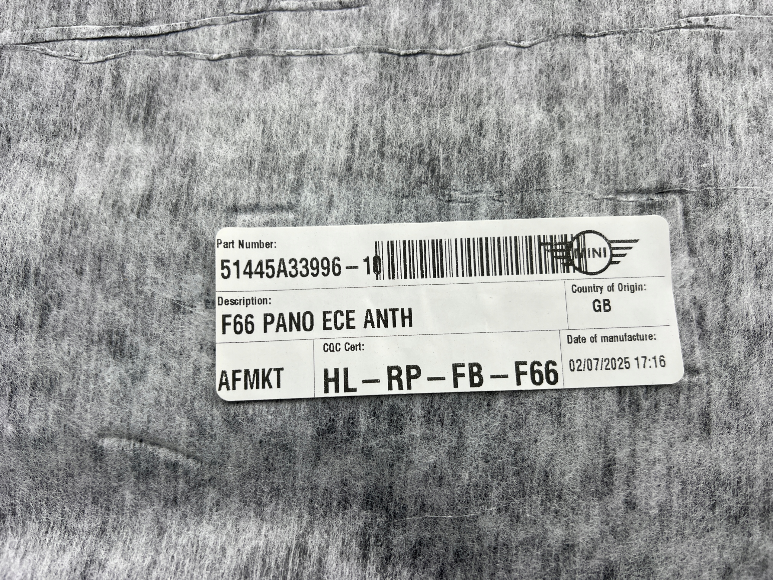 Mini f66 стеля стеля панорама czarna оригінал n 24-