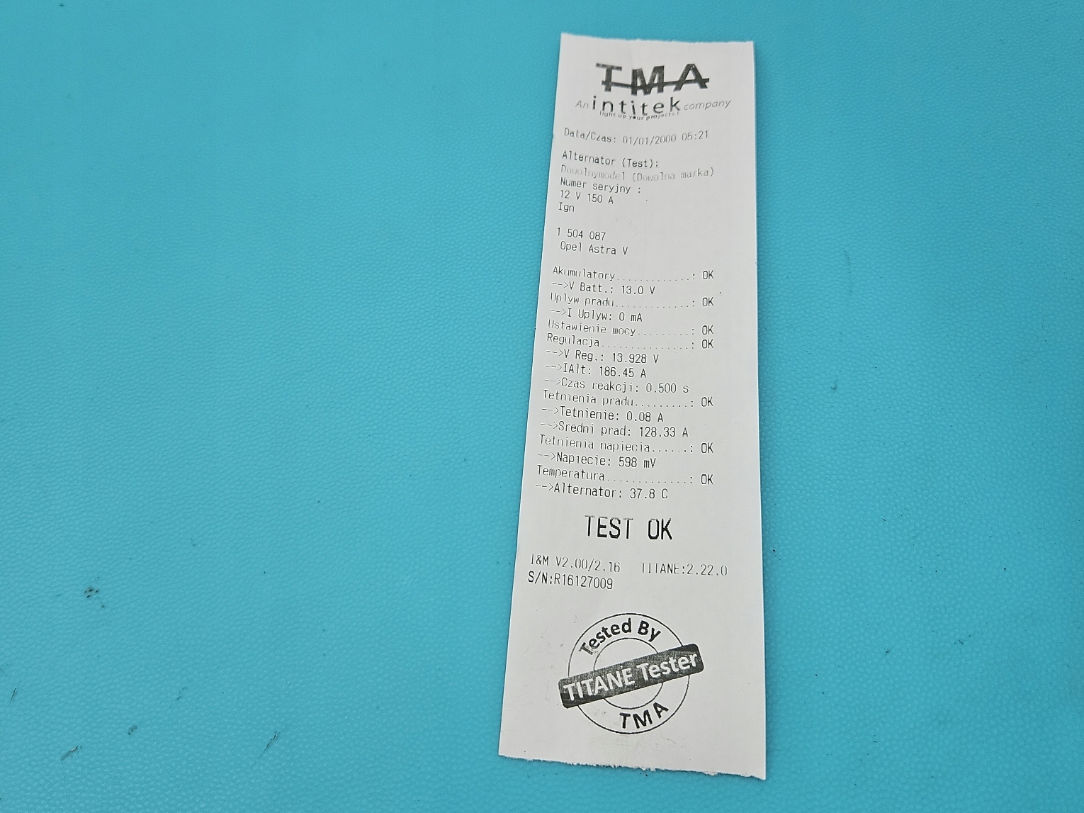 Test генератор opel astra v k 39159019 2725070a 1.5 cdti