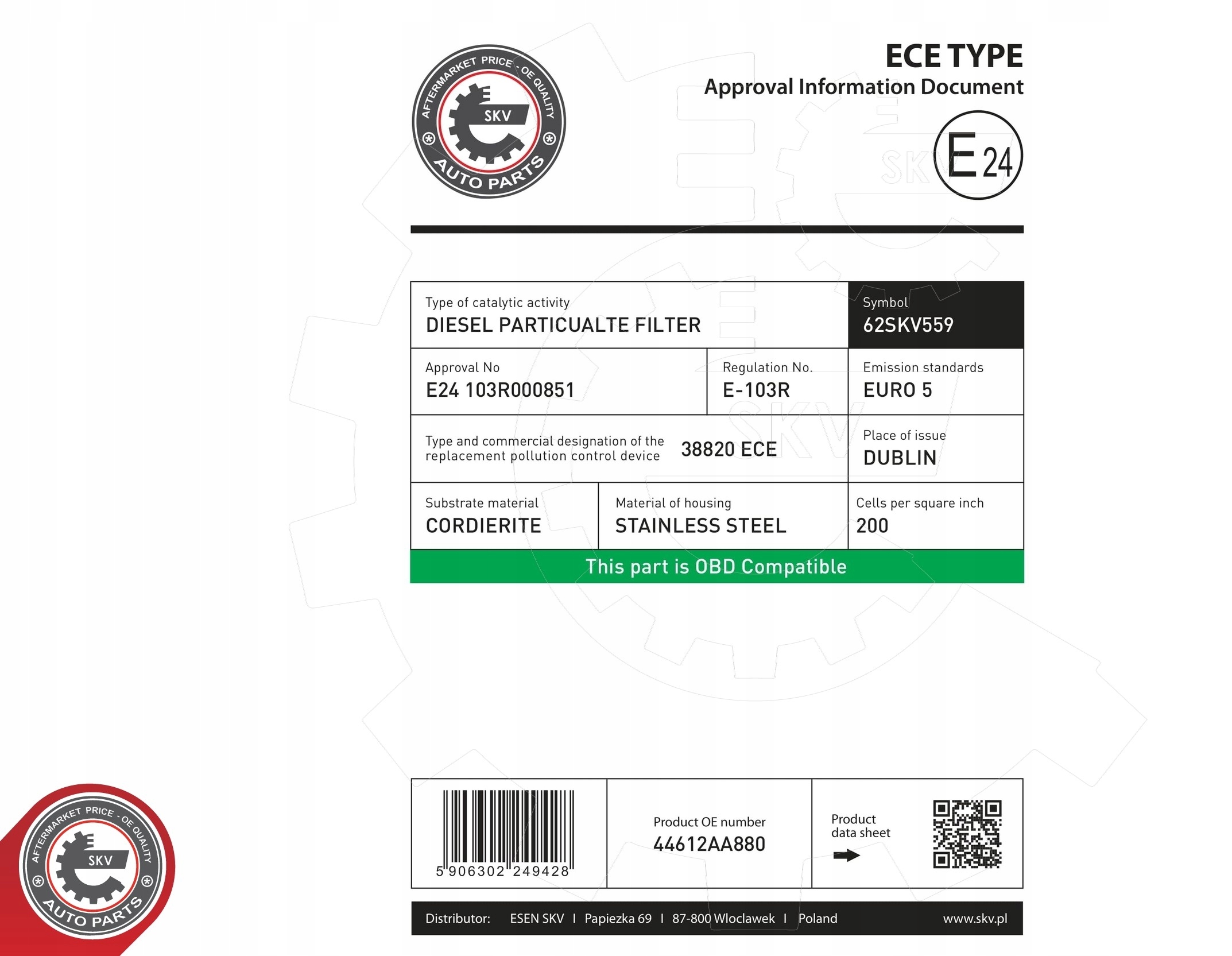 | Якість частини відповідно з gvo: | p - замінник o якості порівнянної do оригінал |
