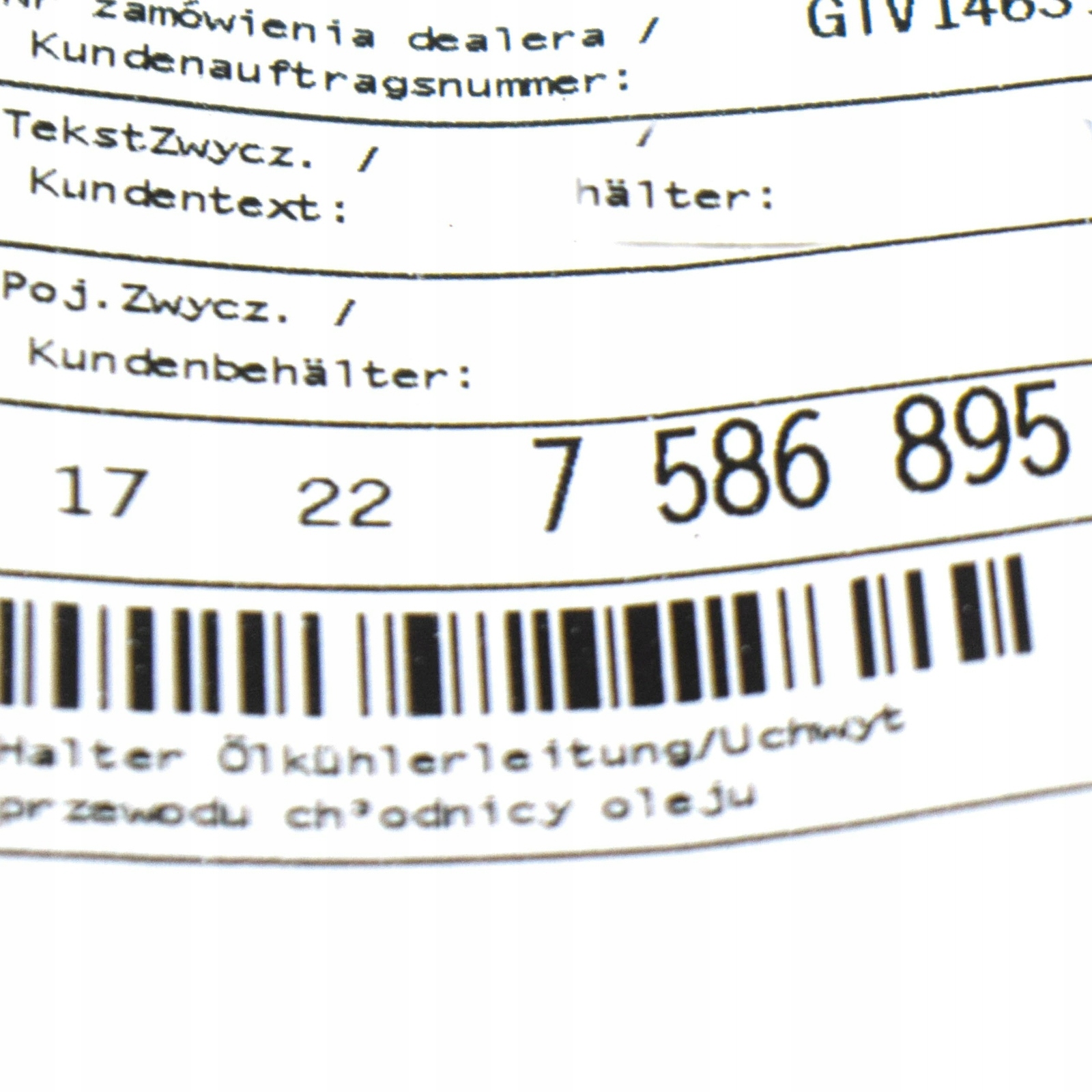 Оригінальний каталожний номер: 7586895, 17227586895