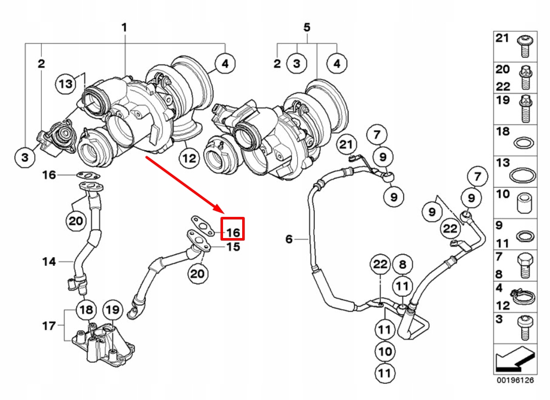 Прокладка трубка масляний турбонагнітача bmw x7 g07 11428624158 8624158