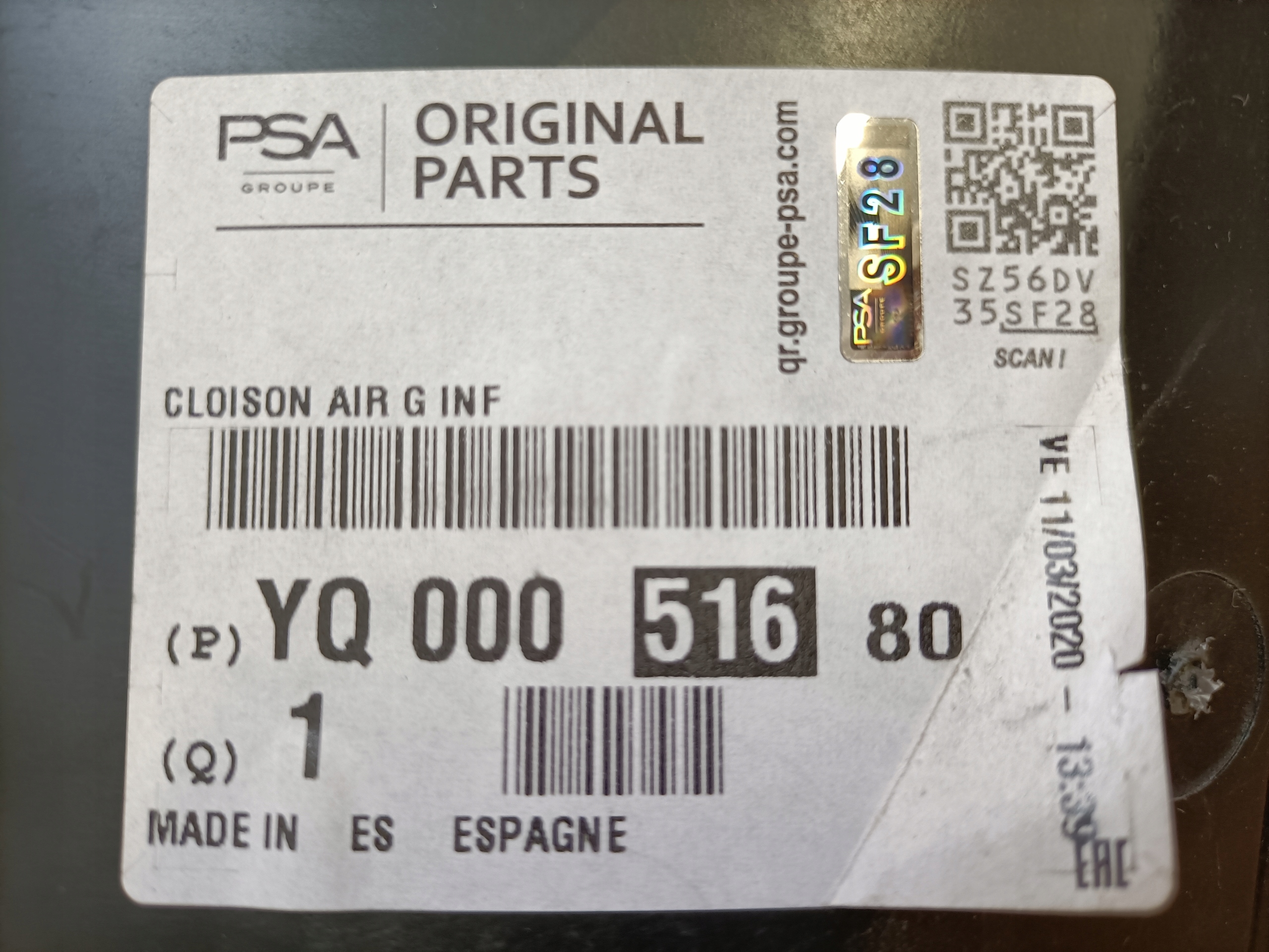 Якість частини відповідно з gvo: o - оригінал з logo виробник транспортного засобу оригінальний номер