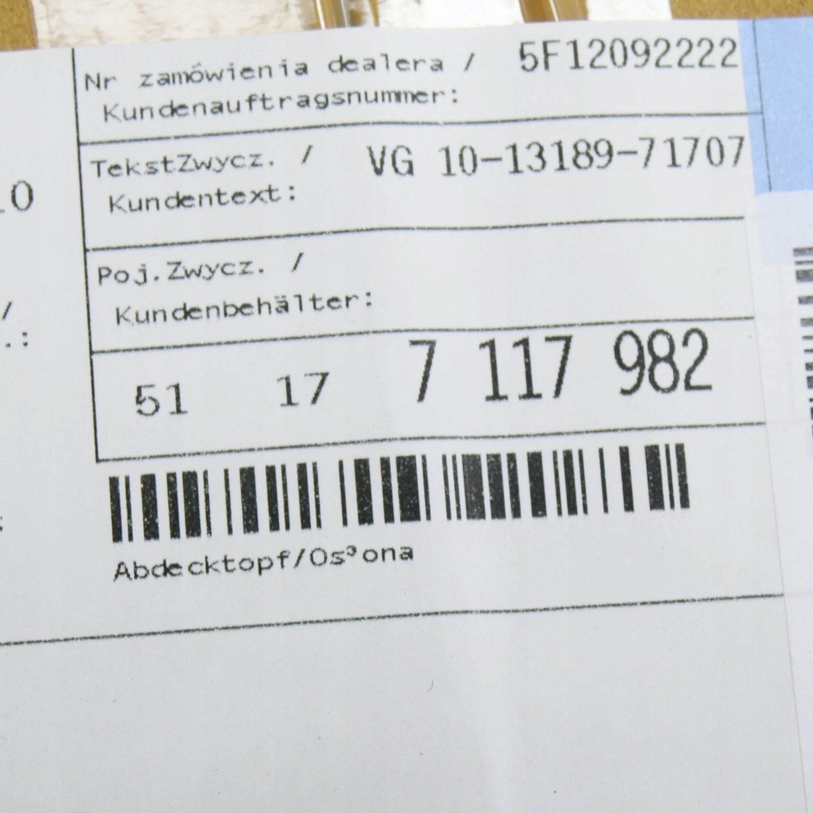Оригінальний каталожний номер: 51-17-7-117-982