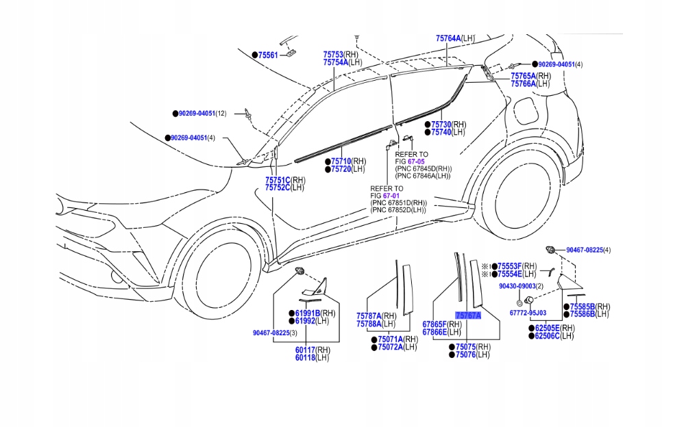 75767-f4010 прокладка pod накладка накладка рамки задніх двері c-hr 16-23