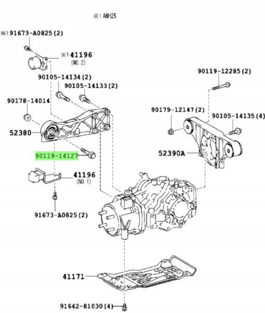Болт кронштейн диференціал задній toyota hiace estima оригінальний номер 90119-14127 з авторозборки