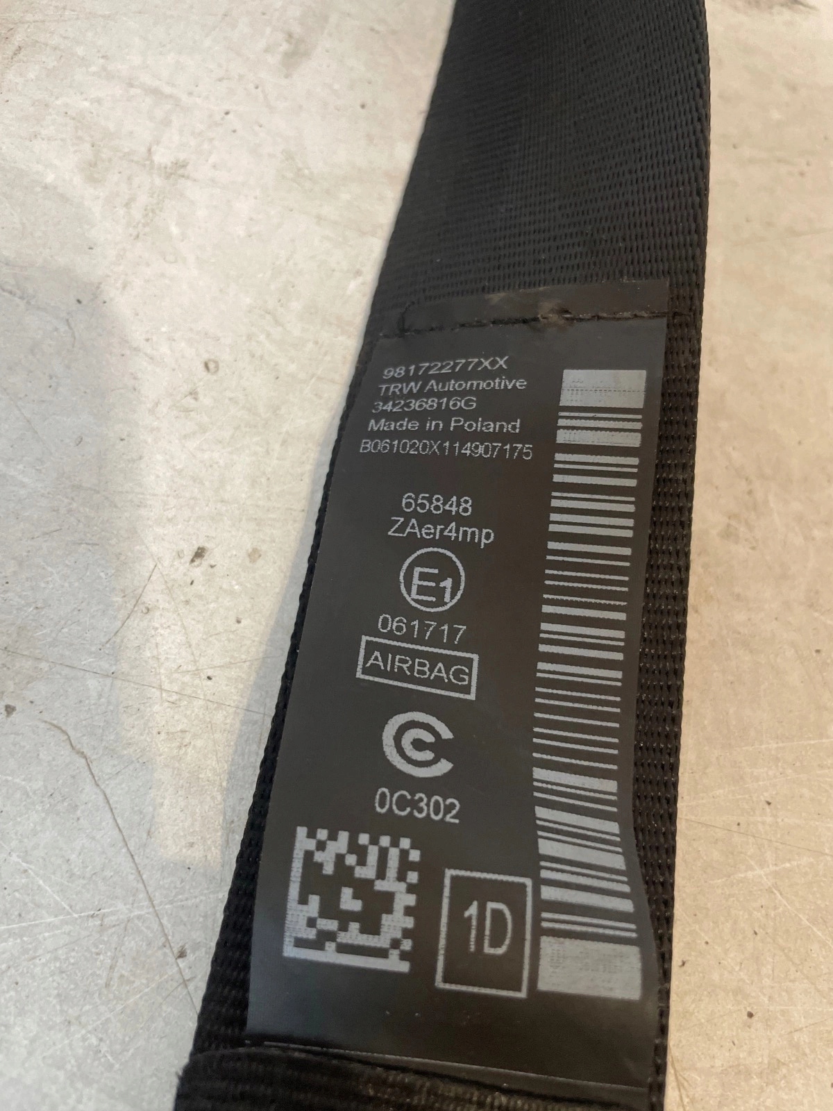 Pas безпеки перед передній правий citroen berlingo iv combo e