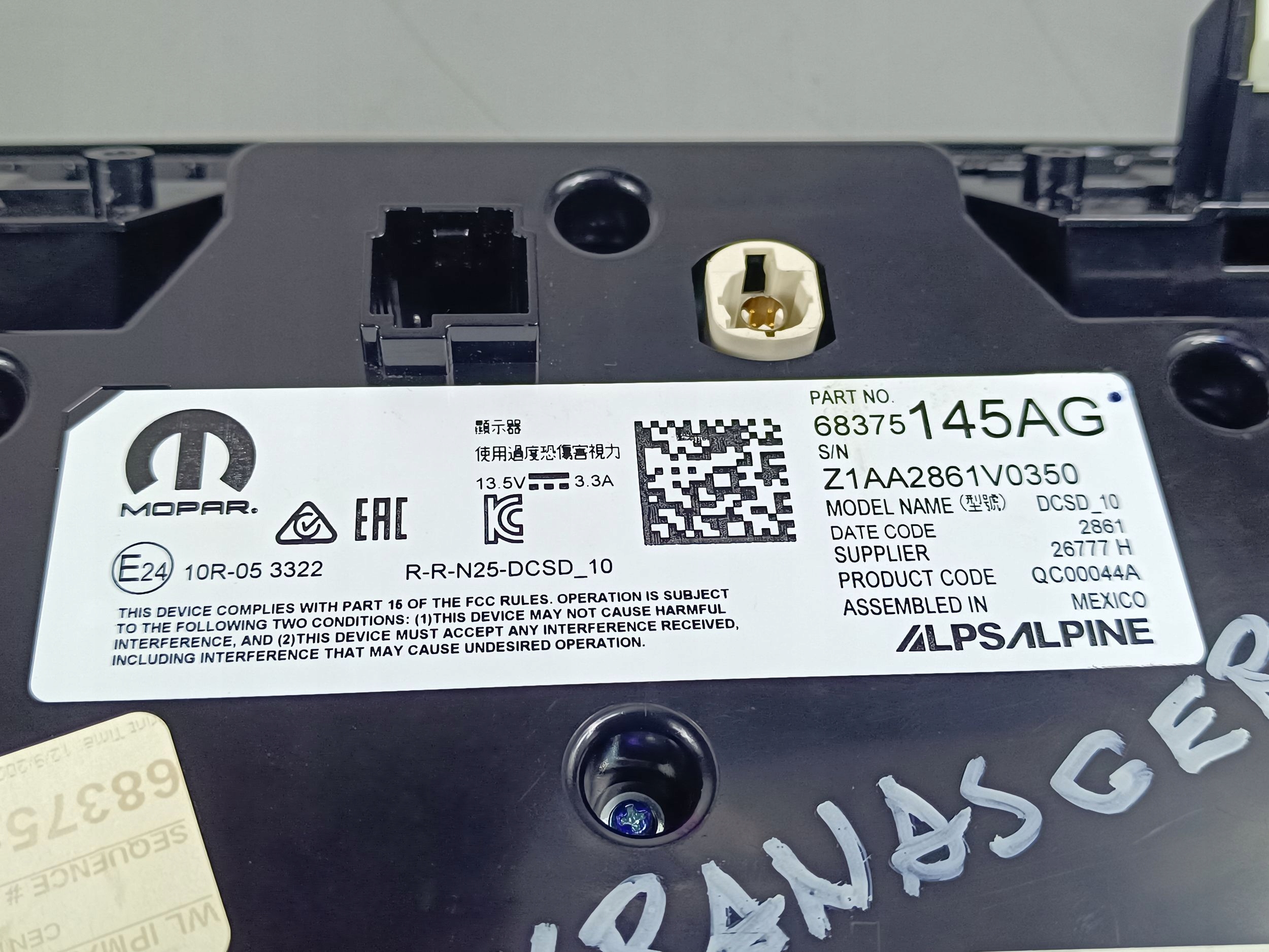 | Каталожний номер деталі: | 68375145AG |