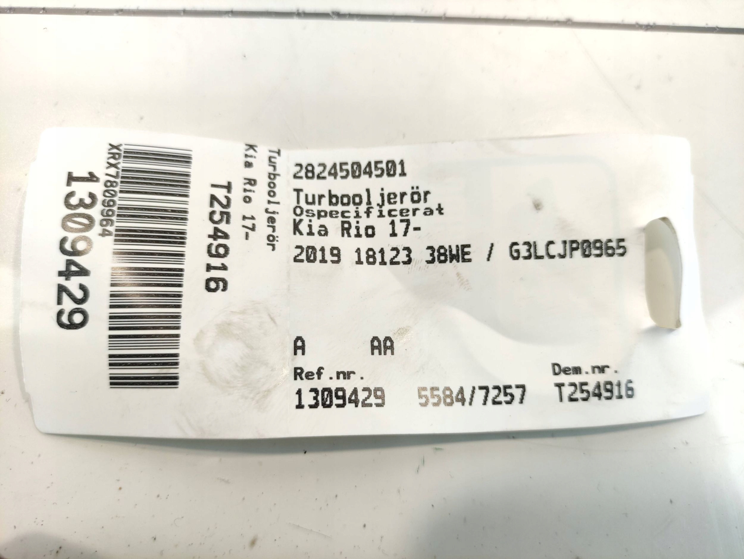 Kia rio 17- шланг масляний турбіни 2824504501