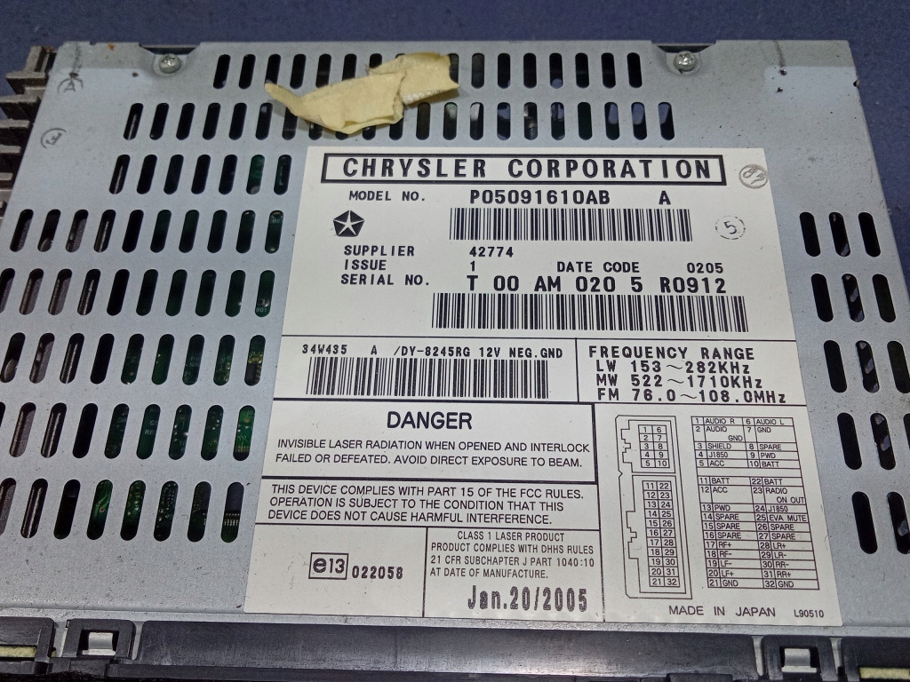 Як перевірити сумісність Chrysler sebring ii радіо заводський p05091610ab з моїм авто?