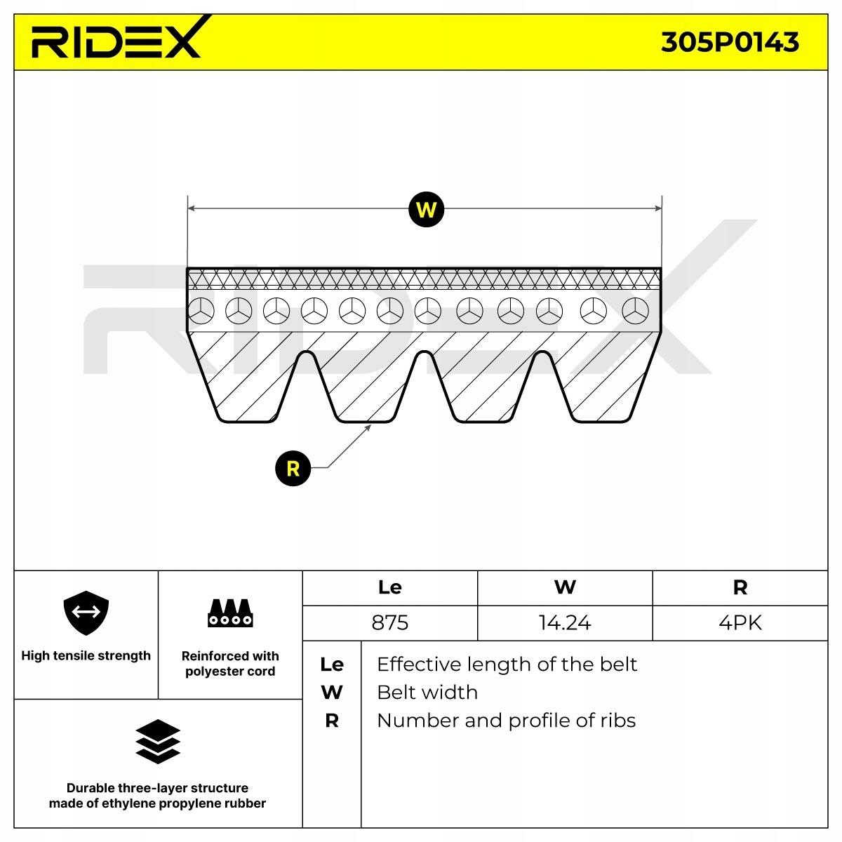 Ремінь клиновий ridex 305p0143 875,0mm до renault espace 2 j/s63 espace 1 замовити