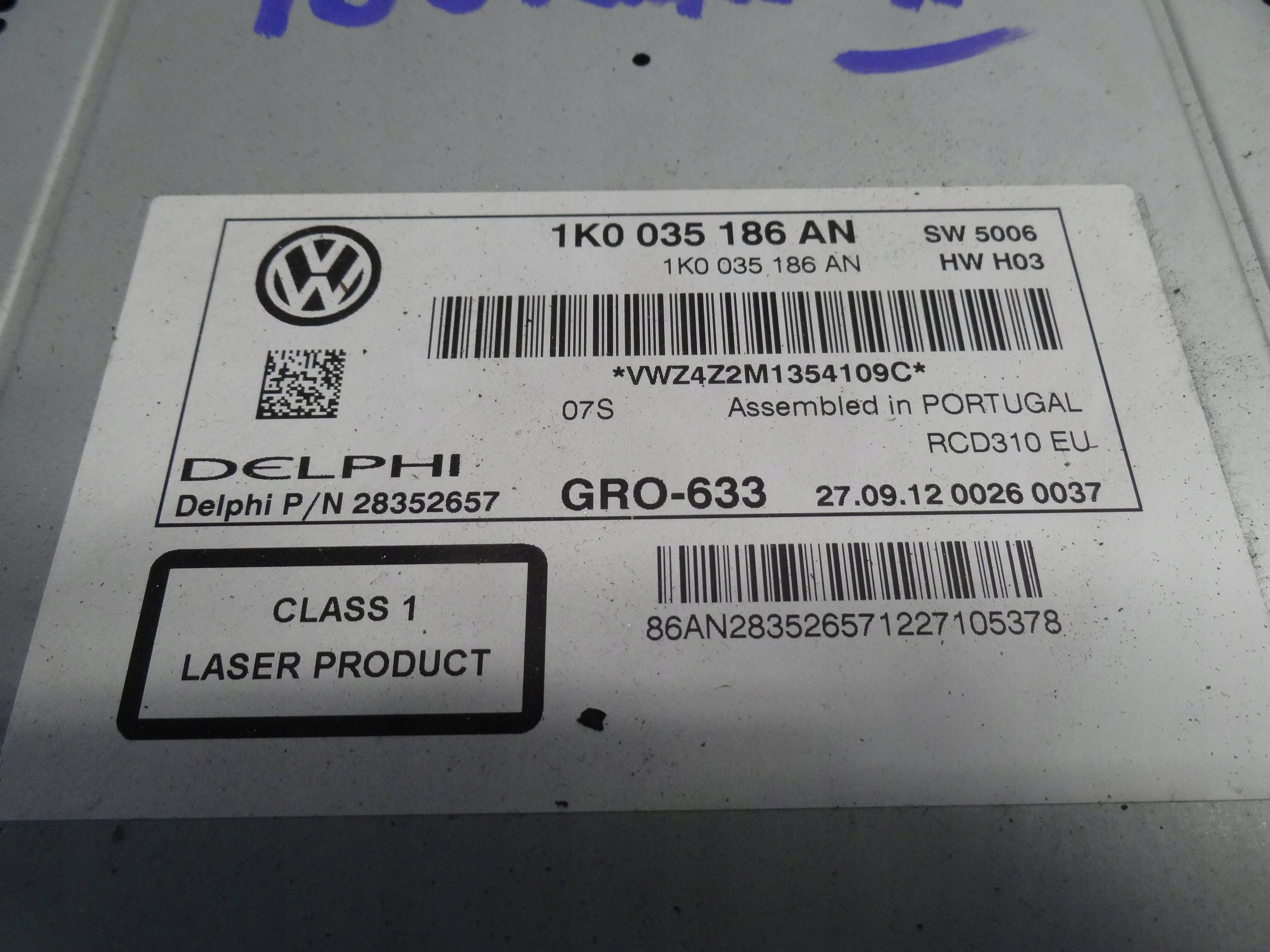 Чи є гарантія на Vw touran 2 2012 радіо радіопрогравач cd 1k0035186an відсутній код?