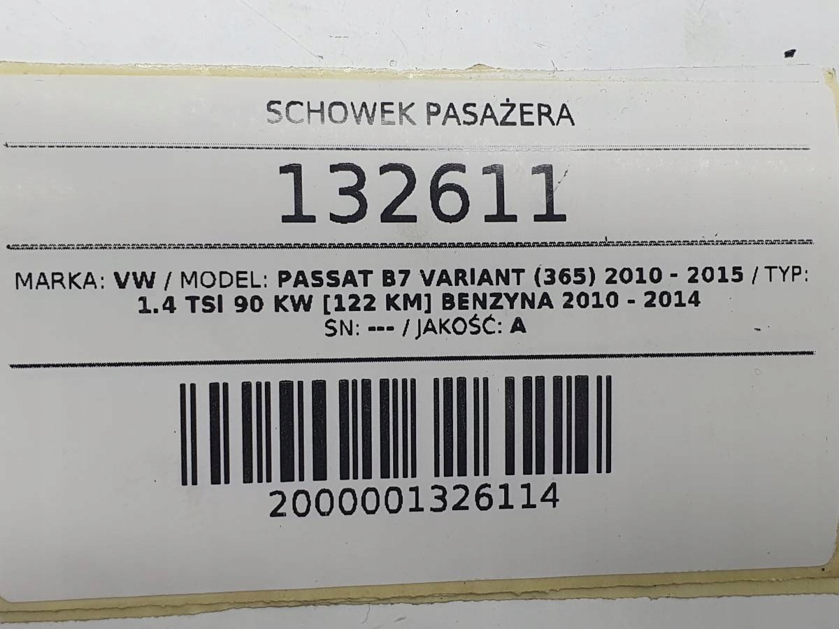Бардачок пасажира vw passat b7 2014 kombi europa чорний