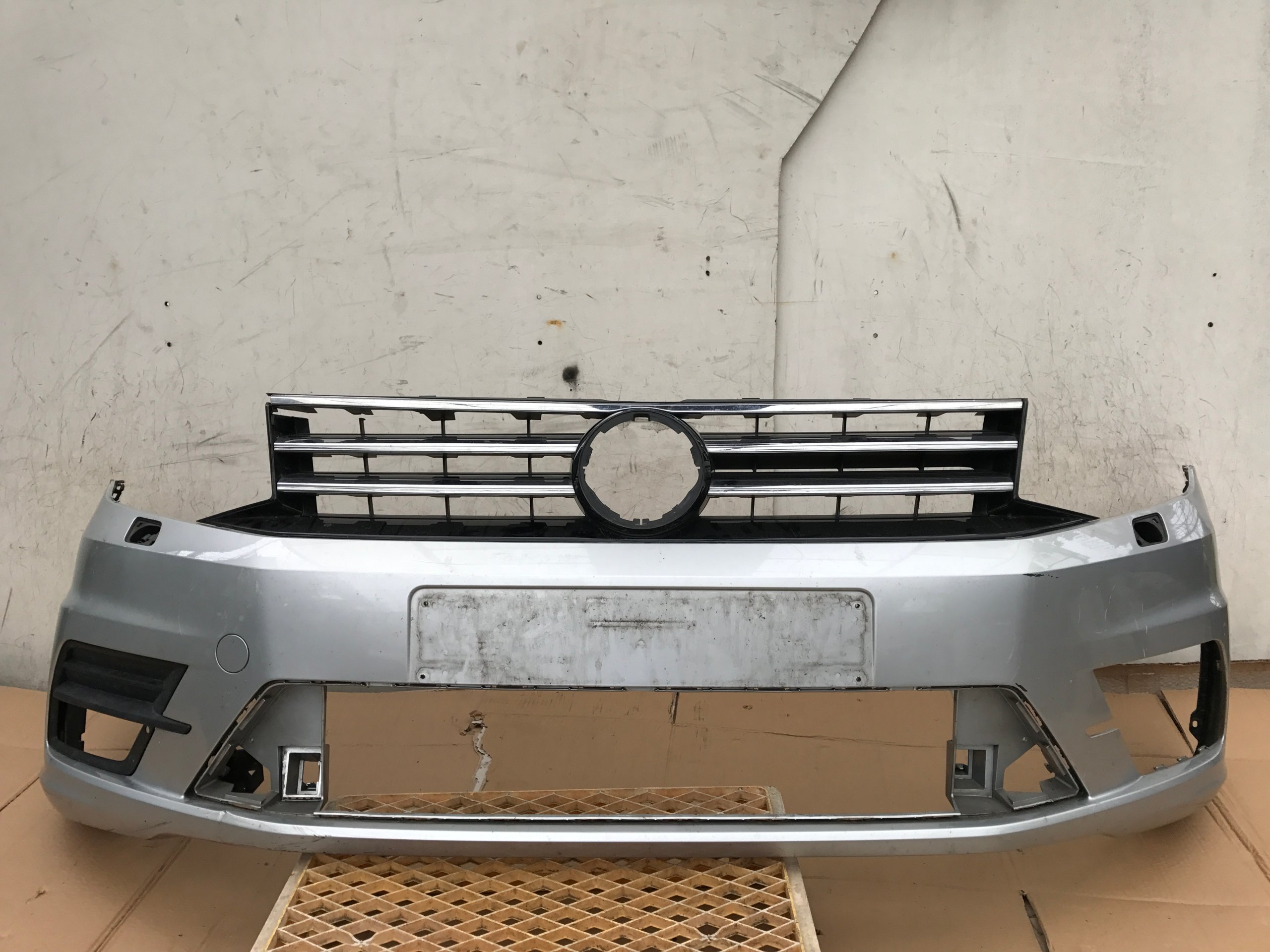Vw caddy 2k5 бампер передній rok 2015- сріблястий