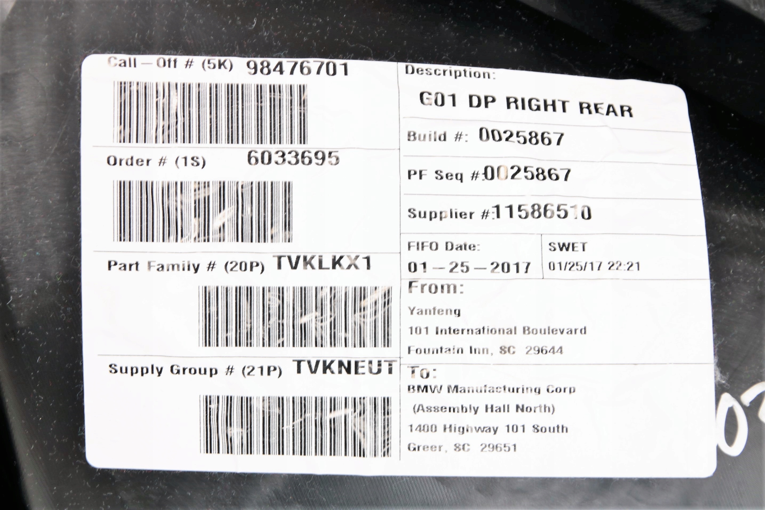 | Каталожний номер деталі: | BMW X3 G01 BOCZEK TAPICERKA DRZWI PRAWY TYŁ STAJNIA 6411 |
