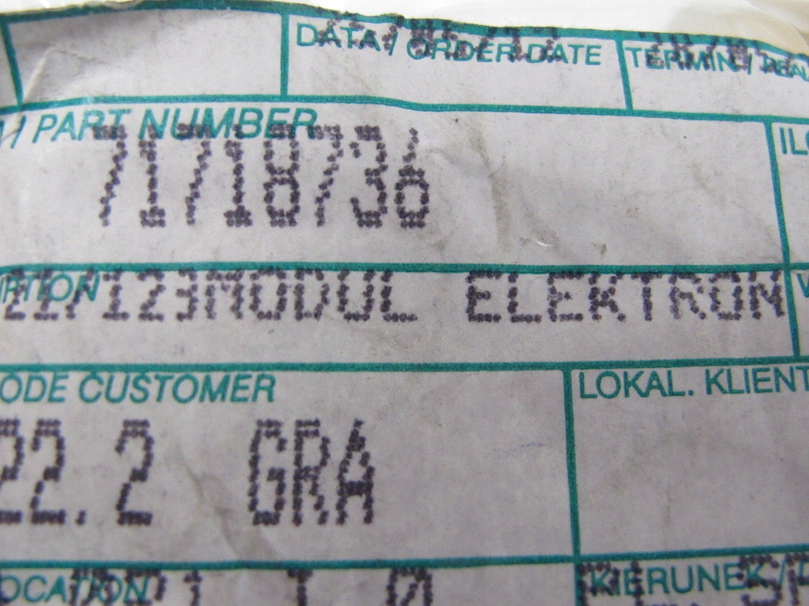 | Каталожний номер деталі: | 71718736 |