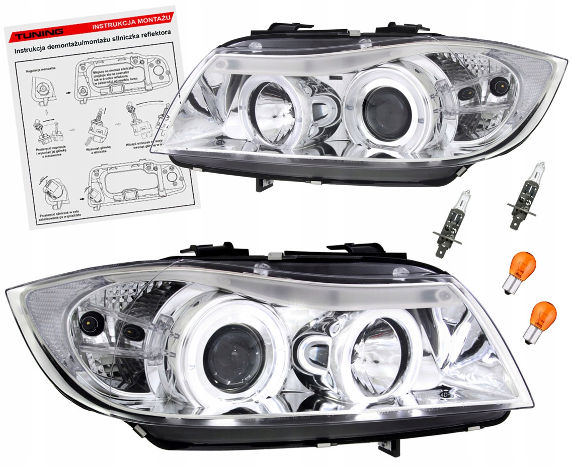 Bmw 3 e90 e91 05-08 лампи фари хром кільця