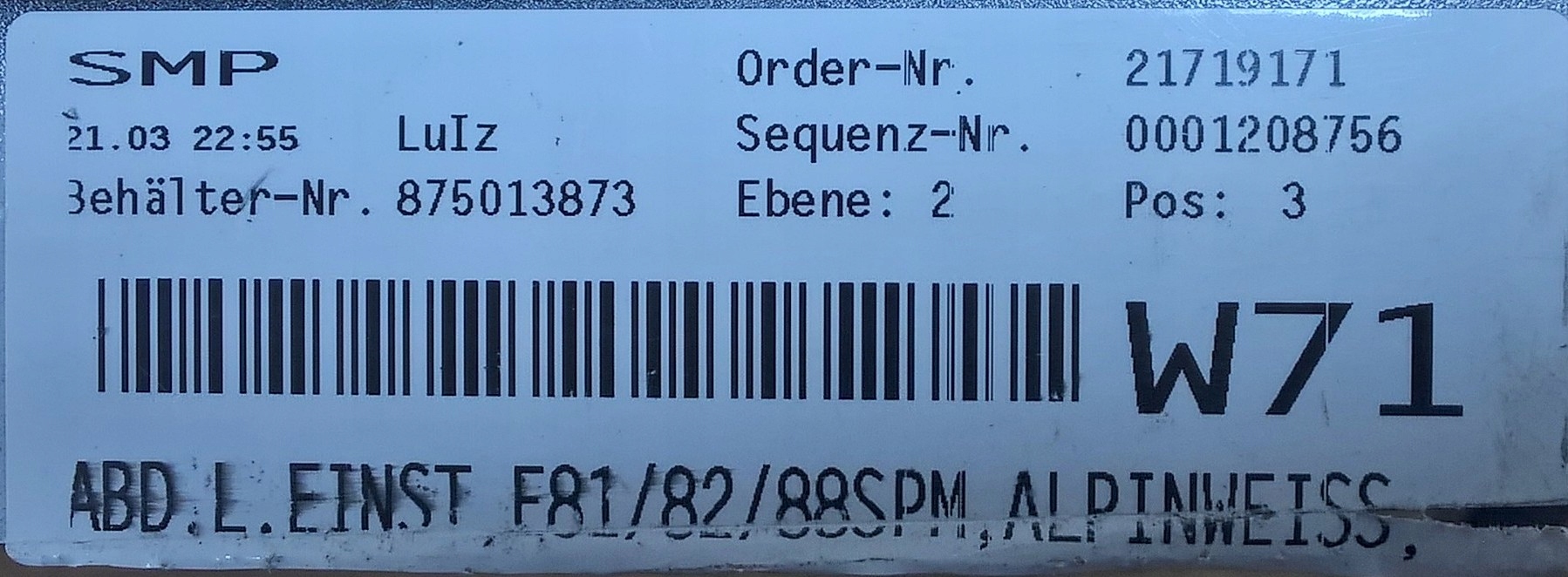 | Каталожний номер деталі: | 51778044663 |