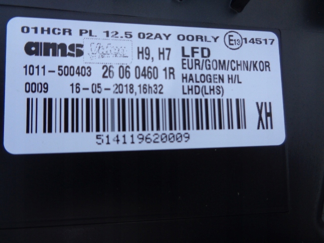 | Тип світла ближнє світло: | tradycyjne / галогенні |