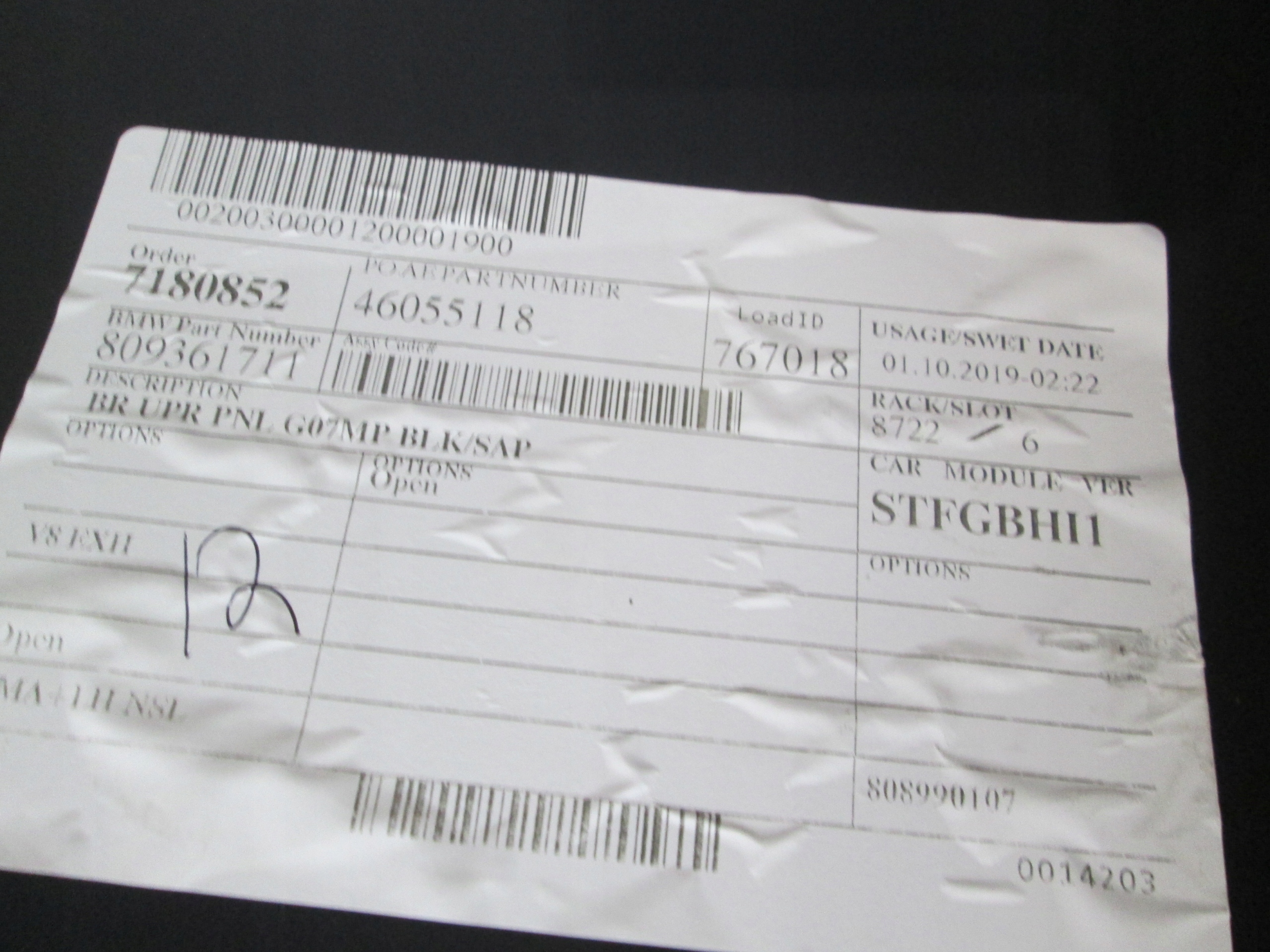 Якість частини відповідно з gvo: o - оригінал з logo виробник транспортного засобу оригінальний номер