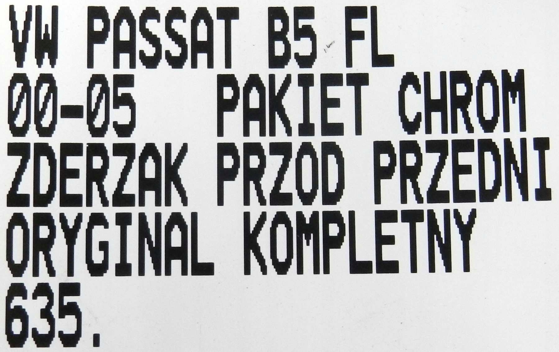 | Каталожний номер деталі: | 635.ZDERZAK, PRZÓD, PRZEDNI, VW, PASSAT, B5, FL, CHROM |